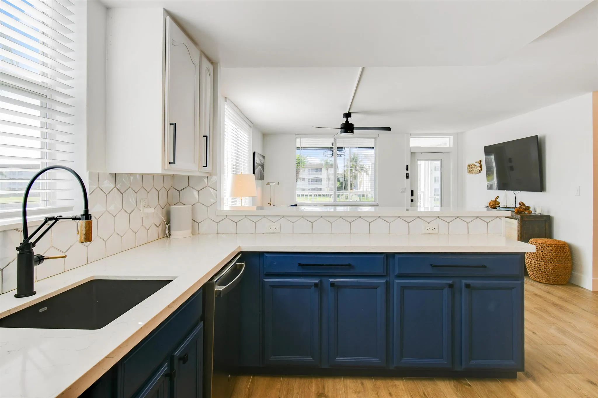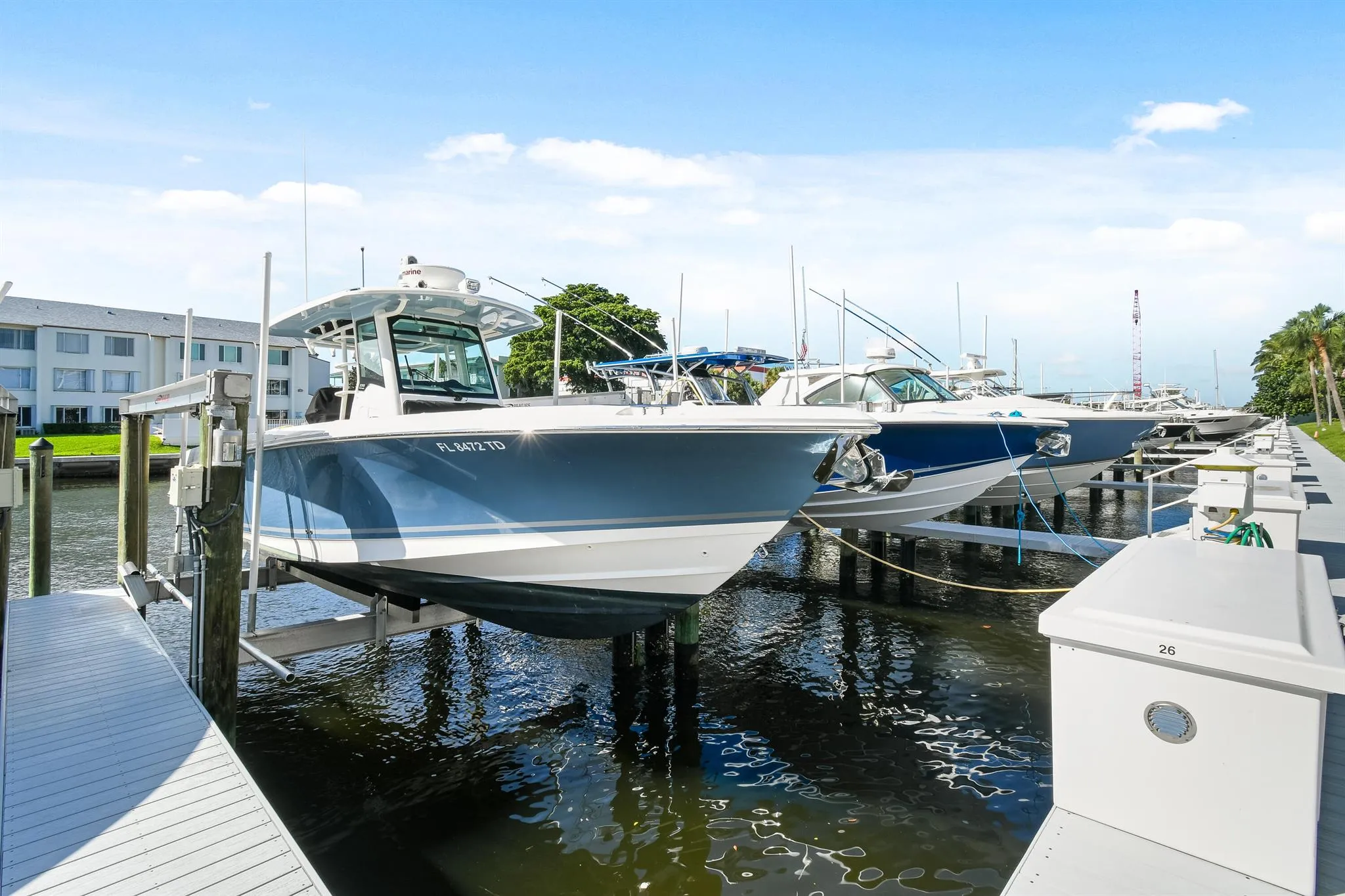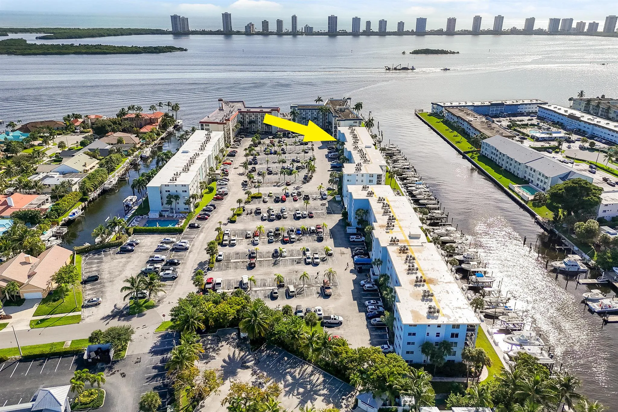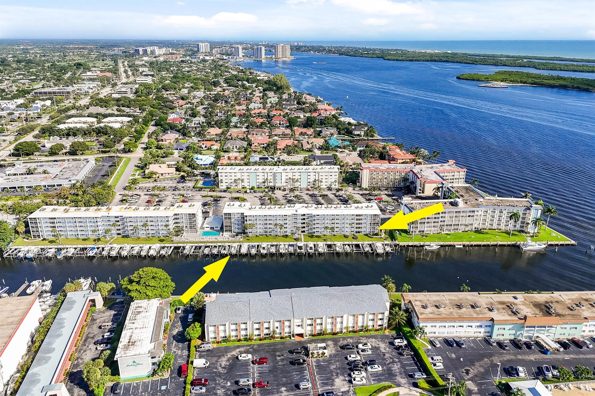 Rarely available! 2 bedroom 2 bathroom end unit condo with a 40 x 16 private deeded dock complete with a 24,000 lb lift, max beam 11’10”! Enjoy breathtaking panoramic views of the Earman River and Intracoastal waterway from your living room or private screened patio. This beautifully updated condo is the perfect place to experience the beauty of waterfront living. Your coastal retreat includes stainless-steel appliances, elegant quartz countertops in the kitchen, updated bathrooms, impact windows, wood-like porcelain tile flooring throughout and custom California Closets in the primary & secondary bedrooms.