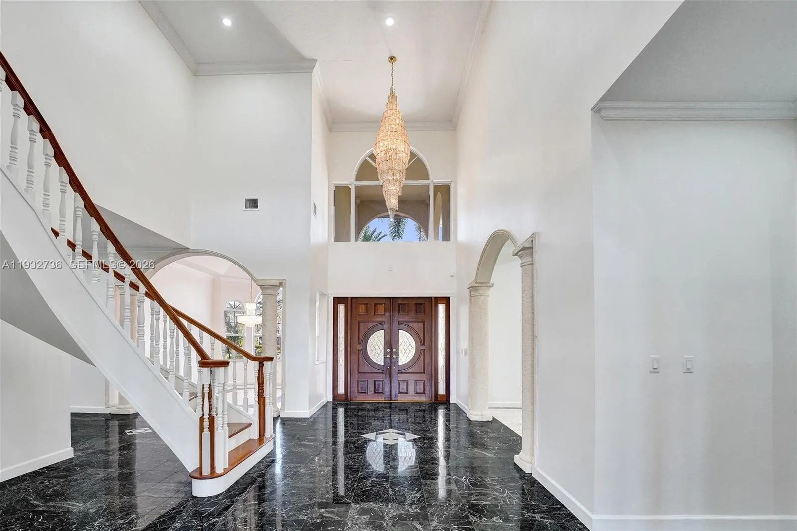 Located in the prestigious guard gated Windmill Lake Estates of Weston, this custom two story estate offers timeless elegance and privacy on a one acre homesite. Introduced by a grand circular driveway, the home features a soaring foyer with sweeping staircase, elegant formal living and dining rooms, and a spacious family room with fireplace and wet bar. The well appointed kitchen opens to a billiard/game room, ideal for entertaining or flexible use. The first floor primary suite offers a spa like bath and custom closets, along with an office/den and guest suite. Upstairs includes loft areas, four additional bedrooms and two baths. Enjoy a resort-style patio with pool, spa, and water views. Completed by a three car garage, 2020 roof, and access to a private community tennis court, this is a rare opportunity in one of Weston’s most exclusive communities.