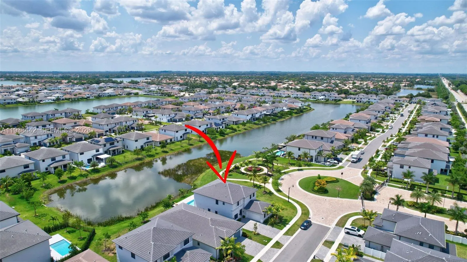 Stunning Lakefront Corner Lot with Pool in Marbella!rnGorgeous lakefront home on a premium corner lot featuring a massive private pool and breathtaking water views. Inside, enjoy elegant marble flooring throughout, a bright open-concept layout, and a chef’s kitchen with quartz countertops and stainless-steel appliances.rnrnThe main residence offers 5 bedrooms, including a versatile space perfect for an office, nursery, or gym. Additionally, the home includes a separate Next Gen guest house with its own private entrance, featuring 2 bedrooms and 1 full bathroom — ideal for in-laws, guests, or rental income.rnrnExperience resort-style living with Marbella’s clubhouse, kids’ play area, and luxury pool, all just minutes from top-rated schools, shopping, dining, and major highways. Don’t miss this rare lakefront gem!