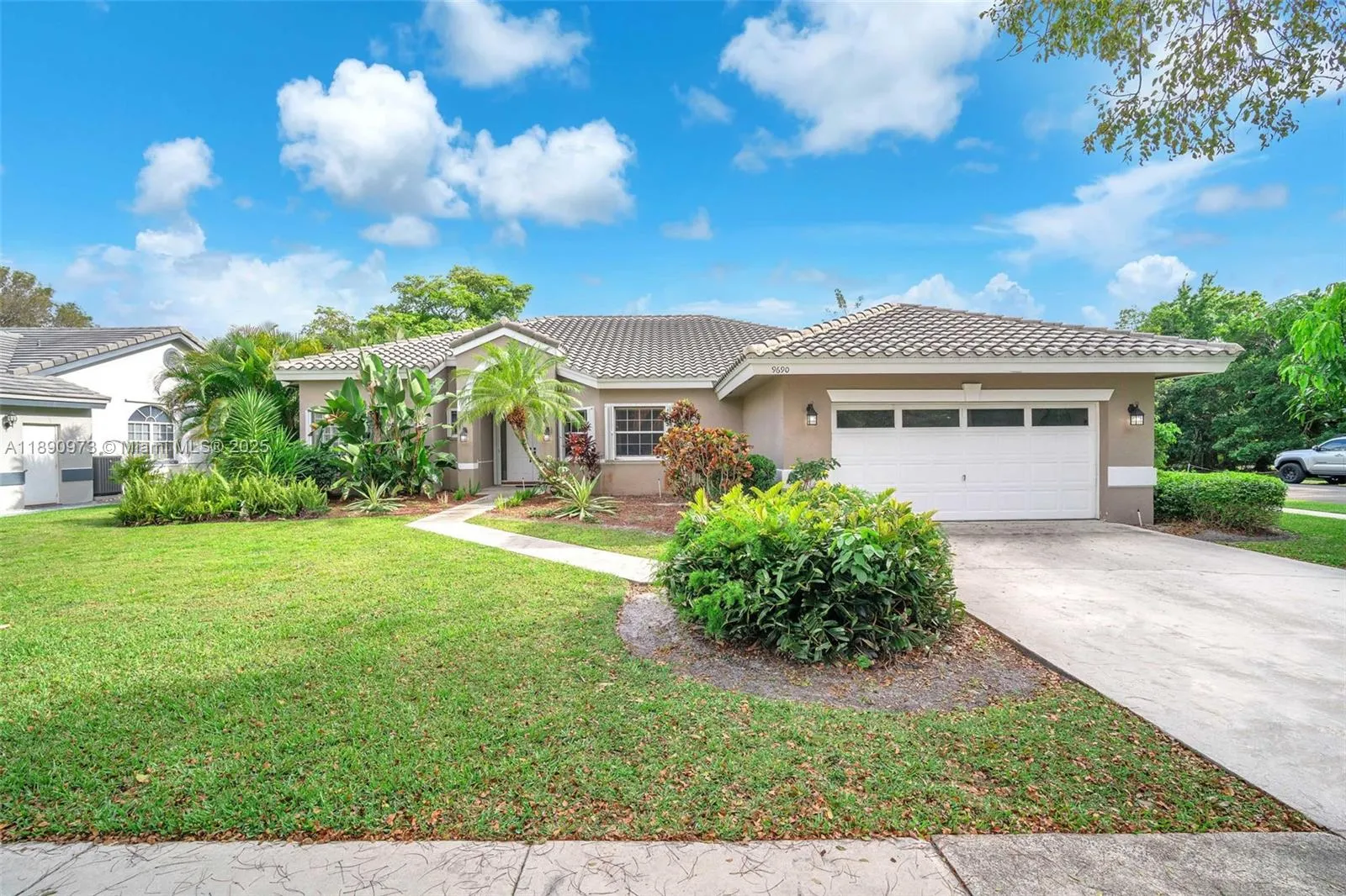 Gorgeous 4/2.5 corner home in the heart of Cooper City! Within walking distance to Cooper City highschool. Mexican tile throughout, wood laminate in bedrooms, split bedroom floorplan, updated kitchen with granite counters. Roof 10 yrs old. Accordion shutters through-out for full hurricane protection. Located in the Stirling Village neighborhood with no HOA. Lushly landscaped corner lot that backs up to private road. Located in an A-Rated school district! Vacant and easy to show.