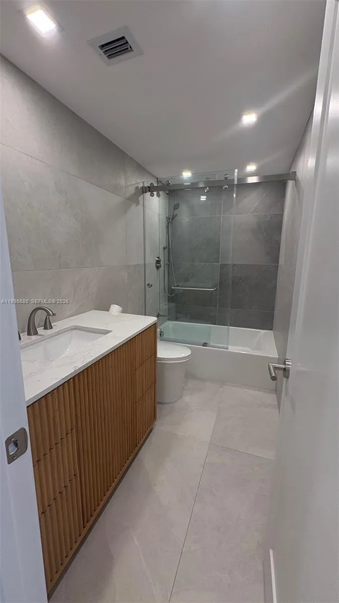 Just finished and never lived in since being remodeled in December 2025, spacious and great layout in this 3 bed/2 bath condo, new Italian porcelain tile, large marble island in the kitchen, ss appliances, washer and dryer; new LED and dimming light fixtures, 2 AC units for extra comfort, shower/tub combo in the 2nd bath, big closet for extra storage; from your balcony you can enjoy breathtaking Ocean and Bay views, plus one assigned covered parking space. Welcome to Oceanview, great building within walking distance to the beach, restaurants, shopping and close to the Aventura Mall, A+ schools. With great amenities, including a beautiful Intracoastal front pool, BBQ area, fitness center, club/game room, lobby, on-site convenience store, cafe, valet. The building has been completely updated, as well as a brand new roof. Rent includes water, trash pick up, wifi & cable. Landlord requires first, last and security deposit to move in.