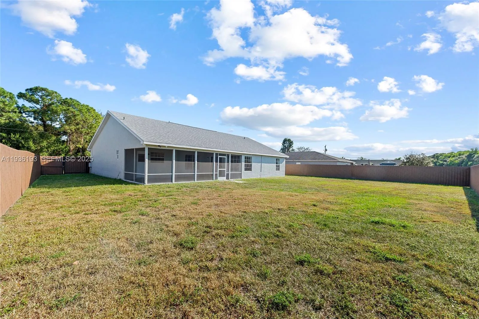 Welcome to this beautifully maintained 3-bedroom, 2-bath home located in the heart of Port St. Lucie. Offering approximately 1,900 square feet of living space, this single-story residence features a highly desirable split floor plan and an open-concept layout perfect for both everyday living and entertaining. The kitchen is a true centerpiece, showcasing rich cherry wood cabinetry, granite countertops, stainless steel appliances, a pantry, and an oversized island ideal for cooking, gathering, and hosting. Vaulted ceilings and tile flooring throughout enhance the home’s bright, airy feel. The spacious primary suite offers a private retreat complete with a large walk-in closet and a generous en-suite bathroom. Step outside to enjoy Florida living at its best with a screened-in patio overlooking a massive, fully fenced backyard – perfect for relaxing, pets, or future outdoor enhancements. Additional highlights include NO HOA, 2022 Roof, 2020 A/C, and 2022 water heater, providing peace of mind for years to come. Conveniently located just minutes from shopping, dining, schools, parks, and major highways. This home truly checks all the boxes – schedule your private showing today!