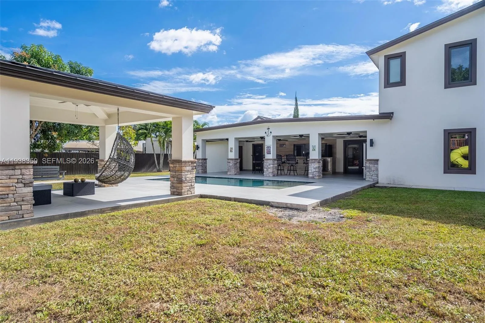 This fully reimagined 4-bedroom, 4 full-bathroom, and 1 half-bath estate is the result of a thoughtful, top-to-bottom renovation that blends modern architecture with resort-inspired living.rnSunlight pours through impact windows and doors, illuminating expansive interiors where every space flows effortlessly into the next. The new designer kitchen anchors the home—an inviting centerpiece for quiet mornings, lively gatherings, and everything in between. Each suite feels like a private sanctuary, with spa-inspired bathrooms that offer calm, comfort, and indulgence.rnStep outside and the home transforms into a private retreat. A shimmering saltwater pool reflects the sky, framed by a custom-built gazebo and a chef-style outdoor kitchen designed for unforgettable evenings under the stars. Whether hosting celebrations or enjoying moments of solitude, the outdoor spaces feel intentional, elegant, and endlessly inviting.rnWith a new roof, covered carport, and generous space for a boat or RV, this estate balances beauty with freedom offering room not only for luxury, but for lifestyle.rnThis is not simply a home.rnIt’s the setting for the life you’ve imagined.