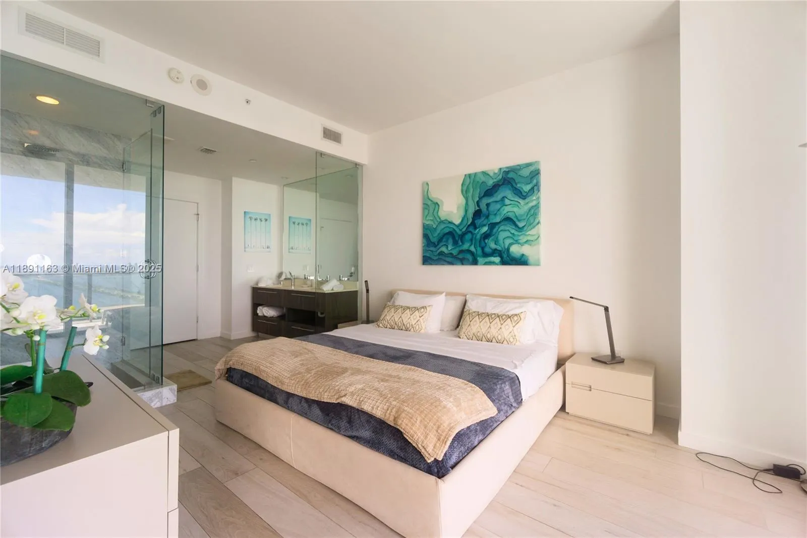 Gorgeous 2 bed 2 bath plus den high floor flat in the luxury Gran Paraiso condo! Amazing and magnetic water view from living room, master bedroom and beautiful oversize terrace overlooking Biscayne Bay. The apartment comes furnished (Italian high end brands) and features wood porcelain floor all over, Wolf built in appliances, kitchen isle with sink and dishwasher, electrical blinds and sheers, walk-in and built-in closets.rnIncredible amenities, including gyms (cardio, weights and yoga room), 2 tennis court, SPA, business center, cigar room, wonderful round infinity pool, club room within many others.rnGreat appreciation is coming from the continuous development of Edgewater and the opening of all the retail spaces at the ground floor of the 4 condo.rnPrice is firm.