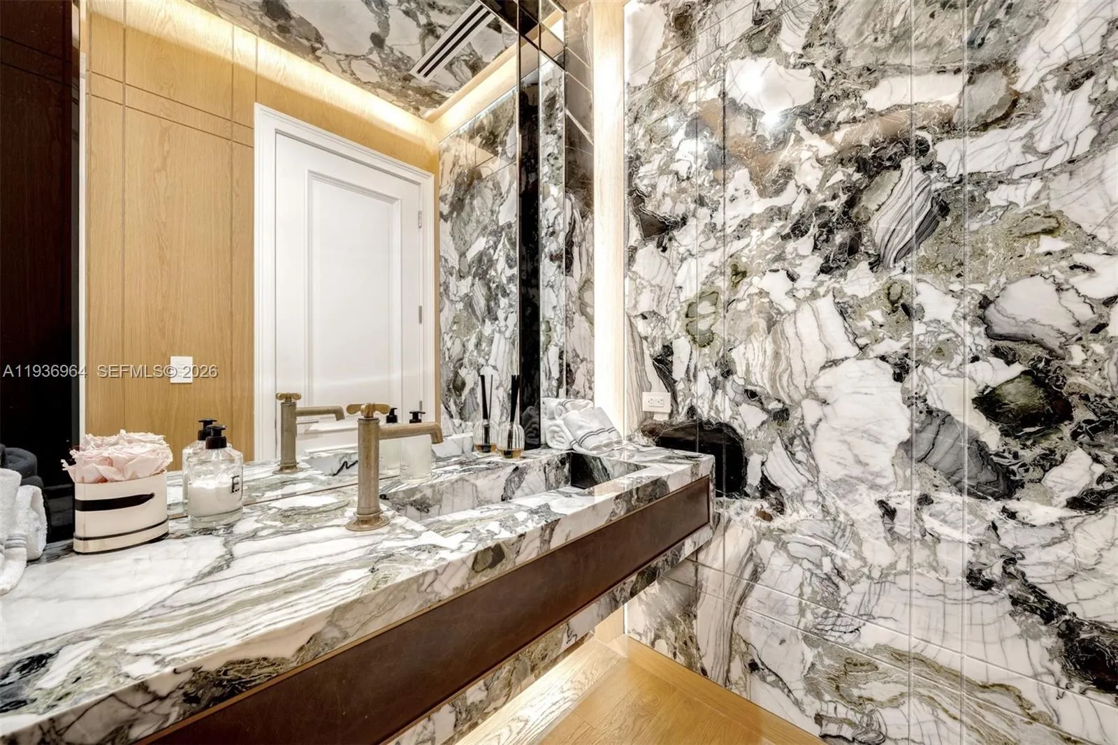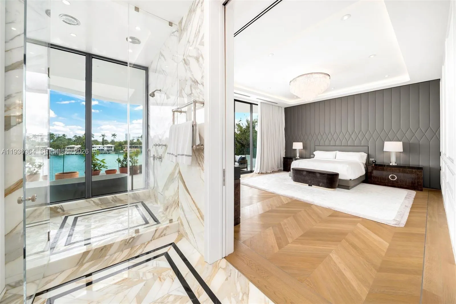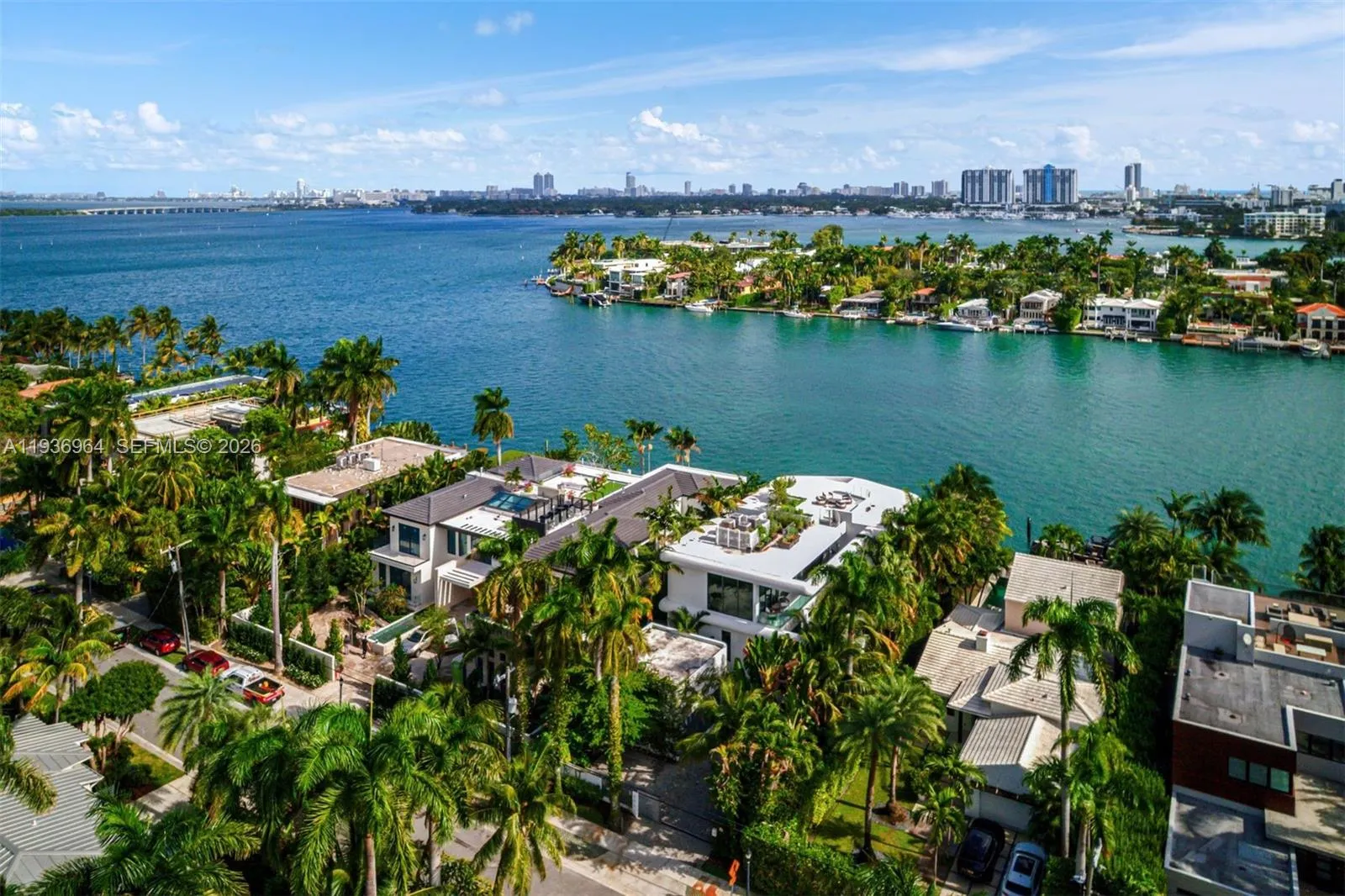 Built in 2018 & designed by DOMO Architecture, this extraordinary waterfront estate stands as the tallest residence on Dilido Island, offering architectural distinction, privacy & uncompromising luxury. Conceived for grand-scale entertaining, the home features executive-level security & soaring 12 foot ceilings with a fully integrated smart-home system. An exceptional use of luxurious marble throughout the interior & exterior creates a timeless, gallery-like elegance. The state-of-the-art kitchen, finished in striking Calacatta Gold marble & equipped with Wolf, Miele, & Sub-Zero appliances, anchors the home as a natural gathering space. Living areas flow seamlessly outdoors, embracing indoor-outdoor living with a resort-style pool, Jacuzzi, cabana, & a custom extra-large rounded Ipe dock, ideal for waterfront entertaining. Private bedroom suites embody modern luxury, featuring warm chevron oak floors, floor-to-ceiling sheer drapery, refined marble details, & Waterworks faucets and shower fixtures throughout. A dedicated cinema room with an 8K 125-inch projection screen & THX surround sound delivers a true private theater experience. Crowning the residence is a spectacular rooftop retreat with 360-degree water views of Downtown Miami and Miami Beach, complete with an award winning fully edible rooftop garden/farm. Additional features include a showroom garage (lift capable) & mature fruit & vegetable trees, completing this one-of-a-kind waterfront offering.