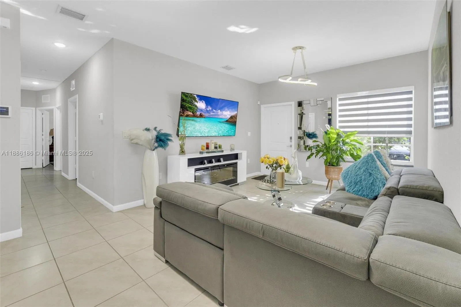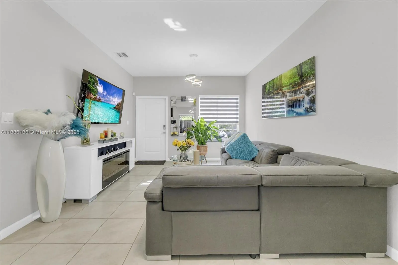 SECTION 8 IS WELCOMED! Discover your ideal home in this stunning, spacious one-story villa featuring 3 bedrooms and 2 bathrooms. Step into your private retreat with a vast fenced backyard, an outdoor oasis complete with a TV—perfect for unforgettable gatherings and entertaining guests. The generous kitchen boasts elegant quartz countertops, and the entire home is beautifully tiled for a modern touch. Enjoy the convenience of an in-home laundry room equipped with a washer and dryer. With 2 assigned parking spaces and ample guest parking, you’ll never have to worry about finding a spot. This incredible community offers a refreshing pool and a clubhouse that can be reserved for special occasions, such as birthday parties and events, along with a gym, security, and onsite management.