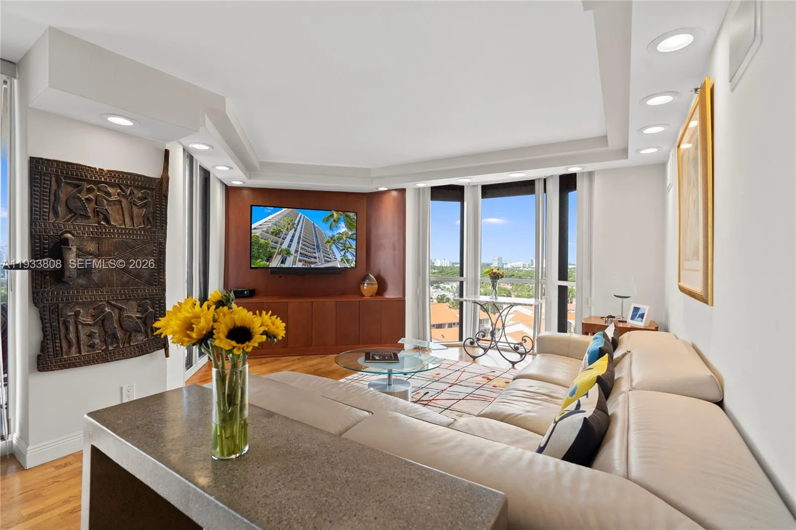 Welcome to unit 1003 at Harbor Towers, an exclusive boutique residence nestled in the heart of Aventura. This stunning home features a spectacular 450+ square foot terrace, offering a private sanctuary with sweeping views of the Waterways Marina and the city skyline. Currently configured as a spacious two-bedroom plus den with two elegant baths, this 1,820-square-foot floor plan radiates warmth and comfort. You’ll love the unique touches, from rich hardwood floors and marble countertops to the updated kitchen and expansive closet space.rnrnLife at Harbor Towers feels truly personal, with only four residences per floor and a suite of premium amenities including a guarded gatehouse, concierge, and valet service. Stay active on the tennis and pickleball courts or relax in the gym and waterfront barbecue area. Located directly on the marina, you’re just a short stroll away from local shops and Aventura Charter High School. Come see why this unique space is the perfect place to call home—reach out today for a private tour.rnrnOutdoor Living: Massive 450+ SF private terrace.rnFlexible Layout: 1,820 SF currently used as 2 bed + den.rnPrime Location: Steps from the Waterways Marina, Senior High School and local shopping.