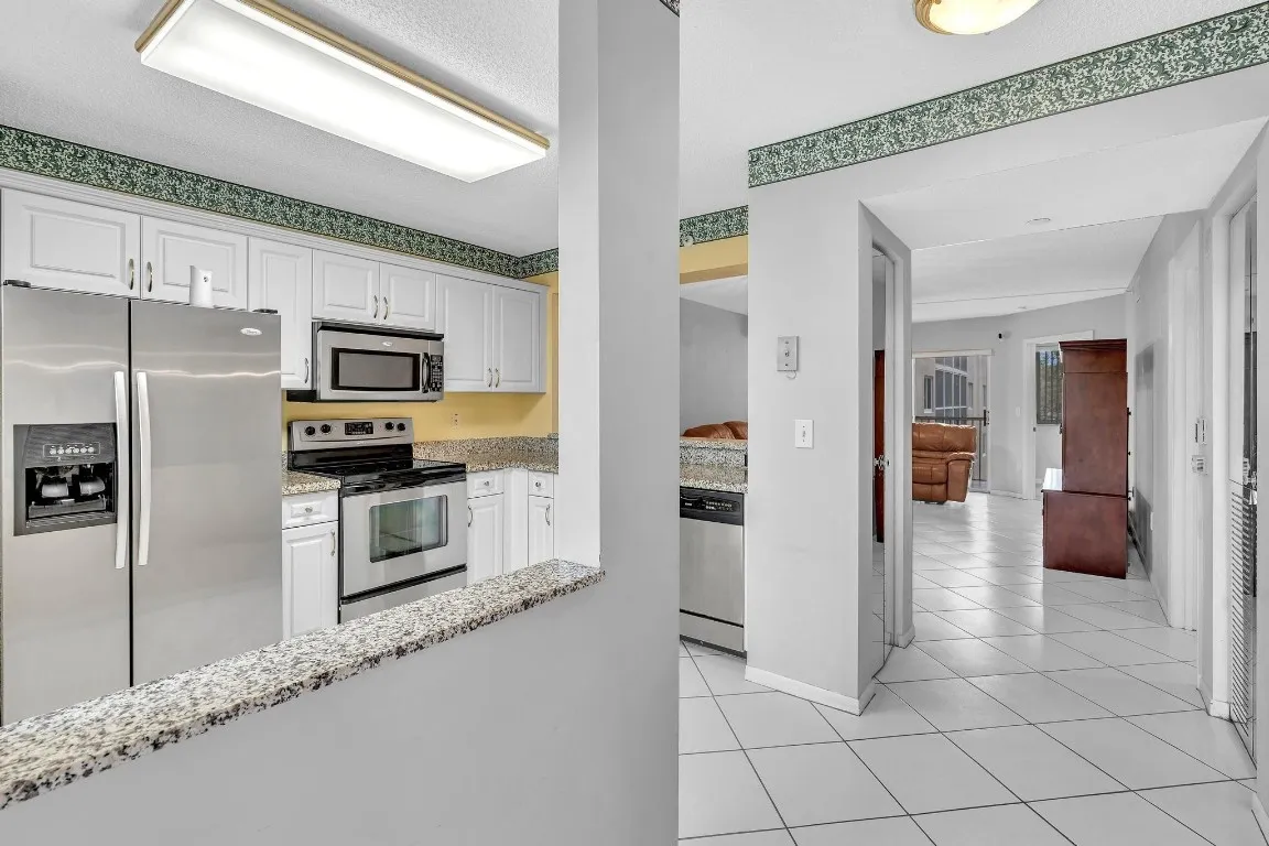 Rere find*Corner*Lovely home hardly occupied*Spectacular* 2-bed, 1.5-bath condo with magnificent WATER VIEW is in the desirable Weldon community. This unique home features a gorgeous, open-plan kitchen with new white cabinets & granite countertop overlooking the living/dining area and screened balcony. Top-of-the-line stainless steel appliances. Beautiful tile flooring in the living area—stunning wood flooring in the beds. The master suite offers walk-in closets. An ample layout & an excellent split floorplan. New closet doors in the 2nd bed. & hallway closet. Light & bright. Large sliding doors stack away to enhance your private & relaxing balcony—parking is next to the unit. Enjoy the amenities of Kings Point, including a state-of-the-art performing arts center, craft room, and theater.