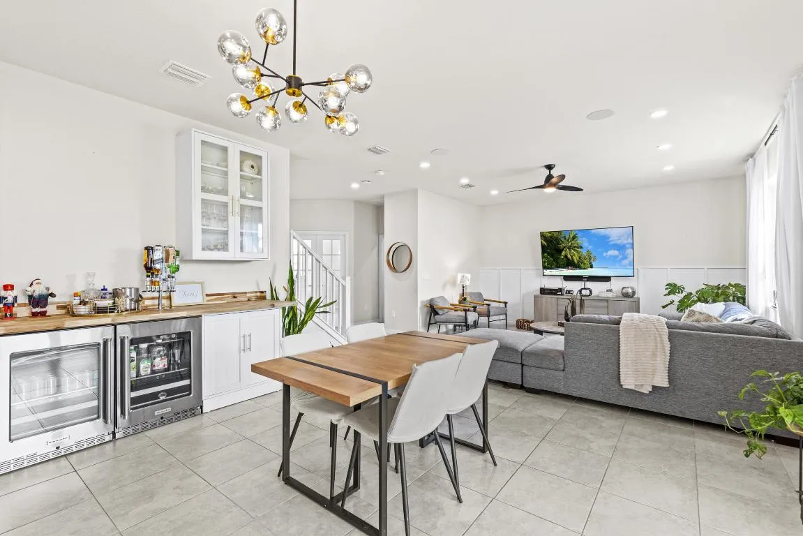 Two story, 4 bed, 2.5 bath, Den/Office, Loft, 2-car garage. Includes SS appliances, Range, oven, microwave, refrigerator, disposal, dishwasher, washer, dryer, 2 mini fridges, water softener, lights under and top of kitchen cabinets, smart dimmer switches throughout the house, living room floor outlet, ceiling speaker system in living room w/out receiver, all light fixtures, thermostat, ceiling fan, garage keypad opener (ceiling rack, door insulated, epoxy floor, additional electrical system), front door keypad with nest doorbell camera and has impact rated windows/doors. The HOA covers lawn maintenance, cable, high speed internet, common area upkeep and more. Residents have full access to the pool and playground. Minutes from restaurants, shopping, top health care facilities, and I 95.
