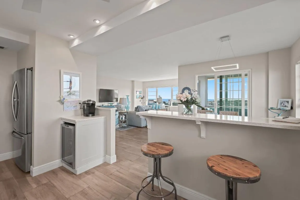 If you think you’ve seen the best views in Delray Beach, think again. Penthouse Unit 12-J at Barr Terrace is truly unlike any other residence in the building—or anywhere in Delray Beach. Perfectly positioned on the penthouse level, this end unit offers unobstructed sunrise, sunset, and sweeping southern exposure views. Its oversized, enclosed balcony extends far enough to also capture northern vistas, providing a rare full panorama of the Delray Beach skyline, the Intracoastal Waterway, and the Atlantic Ocean.rnrnThoughtfully updated in recent years, the condo features porcelain tile floors with a wood-like finish throughout, electric blackout shades in the bedrooms, and sheer window treatments in the living spaces. Every opening is fitted with impact glass, and dual sets of sliders lead to the expansive balcony. An additional wall of impact glass opens completely, framing what may be the best views in all of Delray Beach.nnThe open-concept kitchen makes cooking a pleasure, with remarkable views from the bar-top seating and throughout the space. Newer stainless-steel appliances, a wine refrigerator, and a combo washer/dryer provide everything you could ask for.nnWhether you’re entertaining in the kitchen, relaxing in the living room, or waking up in either bedroom, breathtaking views of Delray surround you. With stylish new light fixtures and remote-controlled fans, this condo is fully equipped with thoughtful, modern touches.nnThe unit conveys with one assigned, covered parking space, plus nample guest parking for visitors. A temperature-controlled storage locker is ideal for holiday décor, beach gear, or personal items. Barr Terrace has passed all required milestone certifications and reserve studies. The newly renovated lobby offers a grand entrance with rotating front desk attendants and multiple inviting common areas. nnThe resort-style pool deck has just been completed, featuring new cabanas and a grill area. Residents also enjoy a full-sized fitness center equipped with weights and cardio machines.nThis is the premier penthouse on the market in Delray Beach, located in one of the city’s most ideally positioned buildings on Atlantic Avenue and the Intracoastal. Don’t miss it.