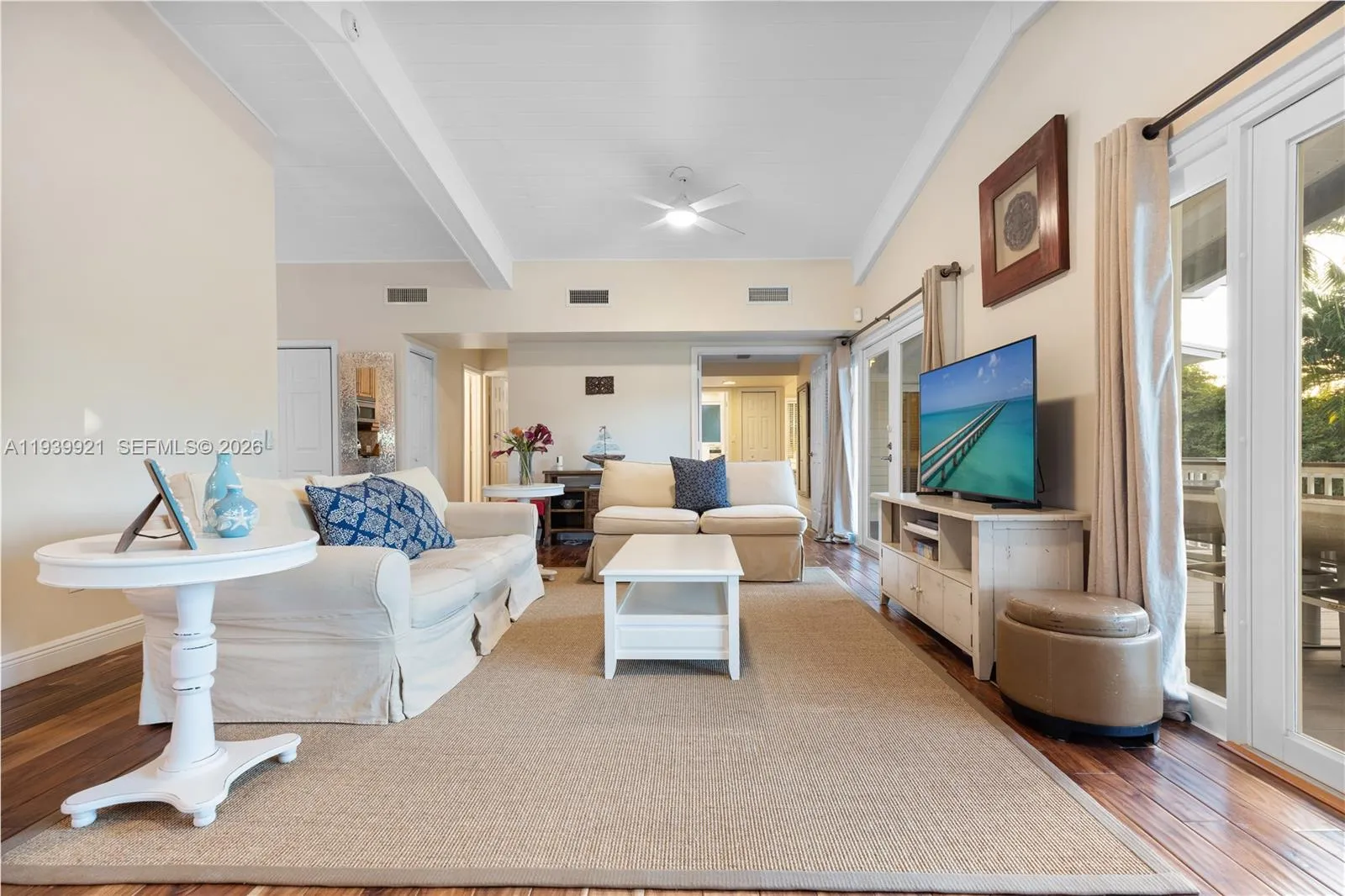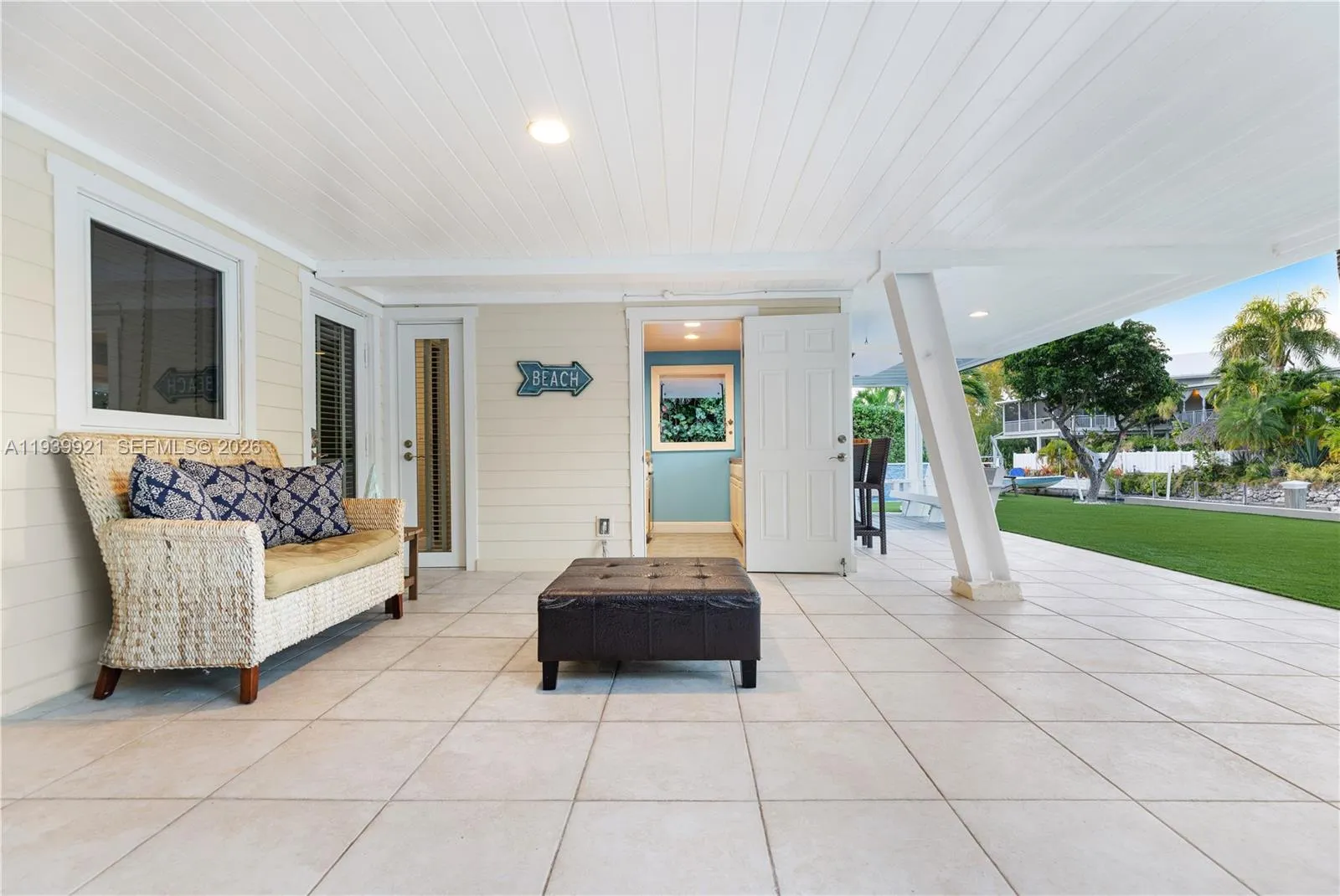 Located in the private gated Seven Acres community, this three bedroom, three bathroom home sits on an approximately one third acre lot surrounded by mature tropical landscaping. Built for durability, the home features steel construction, a metal roof, Hardie board siding, and impact windows and doors.rnrnInside, vaulted tongue and groove ceilings and hardwood floors create a warm and inviting feel. The main living level offers an open layout with defined living and dining areas. The kitchen includes wood cabinetry, stainless steel appliances, and granite countertops.rnrnTwo sets of French doors open to a spacious screened porch with new composite Azek decking. The main level includes two bedrooms, each with a marble bathroom. The primary suite offers three closets and direct access to the screened porch.rnrnThe updated lower level features an en suite guest bedroom, a large patio for entertaining, a full bar, and an oversized air conditioned storage room. The backyard includes a 12 by 26 saline pool with heater and chiller, LED lighting, and a waterfall feature, surrounded by artificial turf and landscape lighting.rnrnWaterfront features include a coral rock seawall with over 100 feet of deep water dockage, a cut in boat slip, and two boat lifts (4 post 16k lb lift and 5k lb hydraulic lift). Located on a clean canal with easy access to the bay, just 3.5 miles from Tavernier Creek. Community also features a trailer storage lot for residents. Turnkey and ready to enjoy.