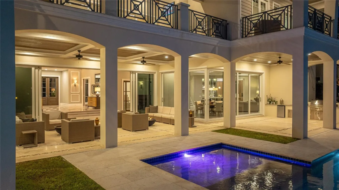 Just Minutes From the Ocean with Showstopping Long Water Views ! This 9,329 sq ft Custom Entertainers Dream Design boasts over 13,000 sq ft of indoor & outdoor living & entertaining space. Deep & wide channel location. 87+ ft dock allows for an array of yacht sizes & design options & additional watercraft. Featuring A Massive Primary Suite & 6 ensuite bedrooms, 7 full baths & 2 half baths, Balconies with breathtaking views, Chef’s kitchen complete with the expeced equipment in a home of this magnitude. Butler’s serving pantry for the discerning entertainer, club room & Bar, game room & 1,350-bottle temperature controlled wine tasting lounge. Additionally; workout studio, 2 offices, elevator, generator, 5 fireplaces, expansive lanais, 3 alfresco kitchens & Stunning lap pool with sundeck.
