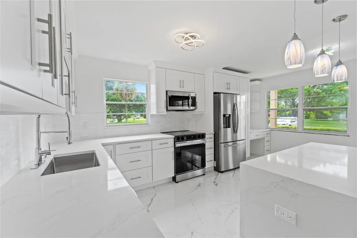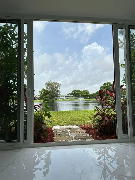 BRAND-NEW IMPACT SLIDING GLASS DOOR INSTALLED, Expanding the Bright Porch Room with a Custom Garden Backyard, Ideal for Outdoor Enthusiasts. Enjoy The Serene Lake View for Relaxing or Entertaining. This Stunning, Fully Renovated 2-Bed, 2-Bath Corner Unit On The First Floor With Lake View Features Tile Flooring Throughout, Custom Closets, Central Air In Both Bathrooms With Extra Fans, Drop Ceiling In Open-Concept Kitchen With Desk Area, Top-Tier Appliances, Waterfall Countertop, Lazy Susan, And Custom Lighting. Premium Fixtures In Kitchen And Baths. Located In A 55+ Resort-Style Community Just 10 Minutes From The Beach—Fitness Center, Sauna, Theater, Pickleball, Pools & More. All Cash