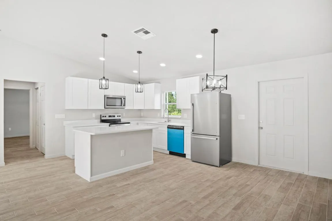 Just completed—brand new 2025 construction in the Basswood community. Expect to be impressed by this nearly 2,000 sq ft home situated on an oversized lot with no HOA. Featuring 3 bedrooms and 2 bathrooms, the split and open floor plan offers high ceilings throughout and a seamless flow. Built with architectural shingles and impact windows for durability and peace of mind. The kitchen showcases wood cabinets, granite countertops, and stainless steel appliances. The master bathroom includes dual sinks and a tiled shower. This home is move-in ready. Schedule your private showing today and make this beautiful new construction yours.