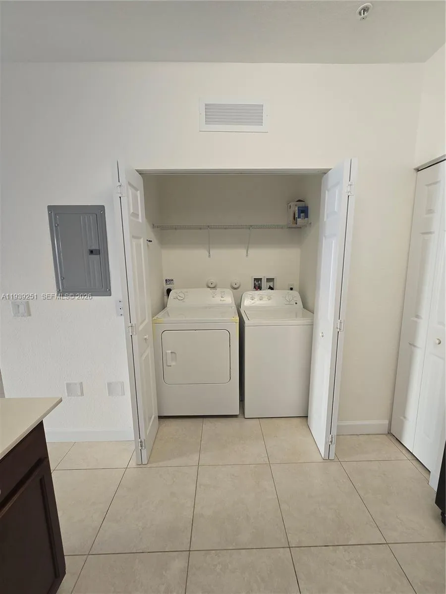 Welcome to this spacious 2-story, two-bed, 2.5-bath apartment in the highly sought-after Century Park West community. This beautifully upgraded unit features modern bathrooms, an in-unit washer and dryer, tiles on the first floor, laminated floors upstairs, and two assigned parking spots. Enjoy the convenience of being just minutes from major highways, the International Mall, and Dolphin Mall, and only 5 minutes from the FIU campus. Located in a secure, gated community, this home offers comfort and accessibility—perfect for those looking for a prime South Florida location!