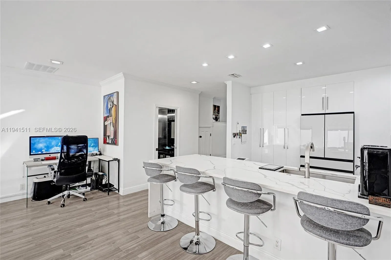 Recently remodeled 2 story townhome. Extra large kitchen, granite countertops and backsplash, stainless steel Samsung appliances throughout. Fifty meters to the Water Ways Marina, and shops. FPL EV charging in garage. Open living/dining area spaciously built out, not offset. Walk out patio porch off living rm. Beautiful vaulted ceiling master suite with a beautifully remodeled bathroom & jacuzzi, walk-in closet and oversized covered balcony off master. “New AC”, Electric window treatments throughout, “Location is everything” almost in front of the pool & gate to the Marina, Guest bedroom has vaulted ceiling with a full shower, and large walking closet. Powder room downstairs and garage and driveway parking. Full reserves excellently managed community, no assessments. Location in the heart of Aventura. HOA includes all exterior including roof, High speed internet and cable with a list of premium channels included. Call and schedule your showing, preferably 24 hour notice for showings. “Owner financing possible”. Call or text listing agent for appointments