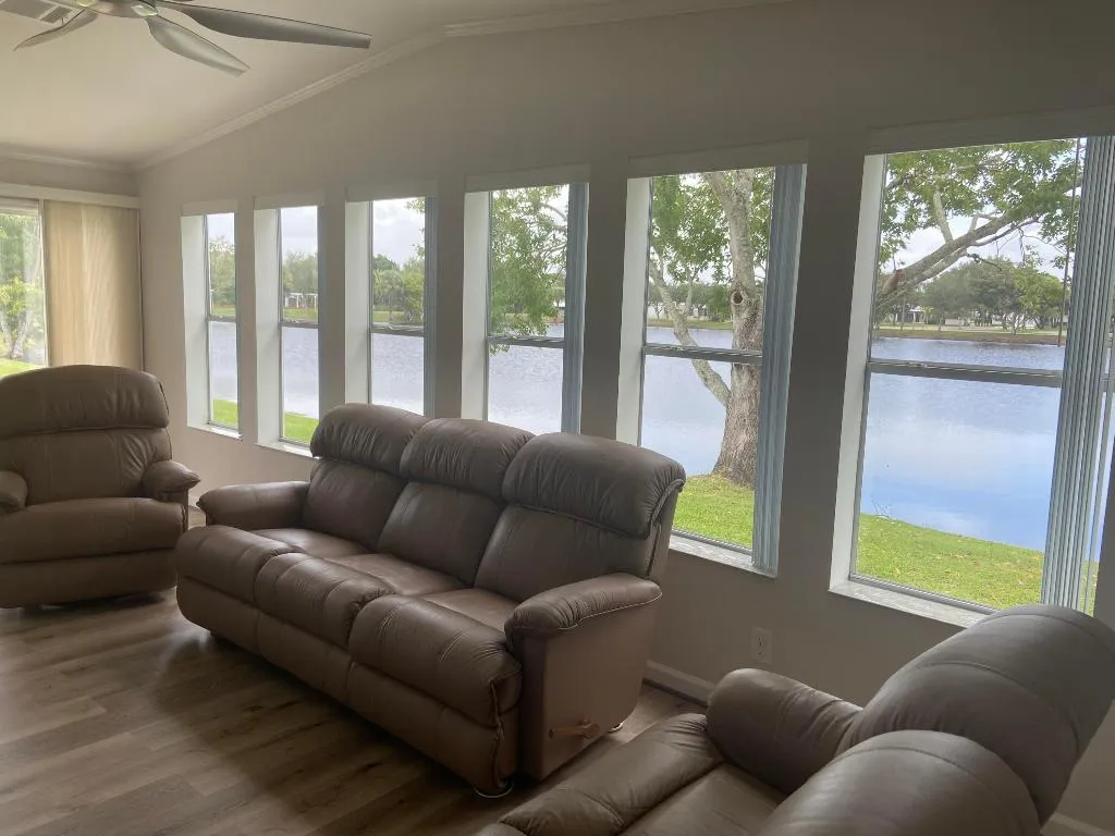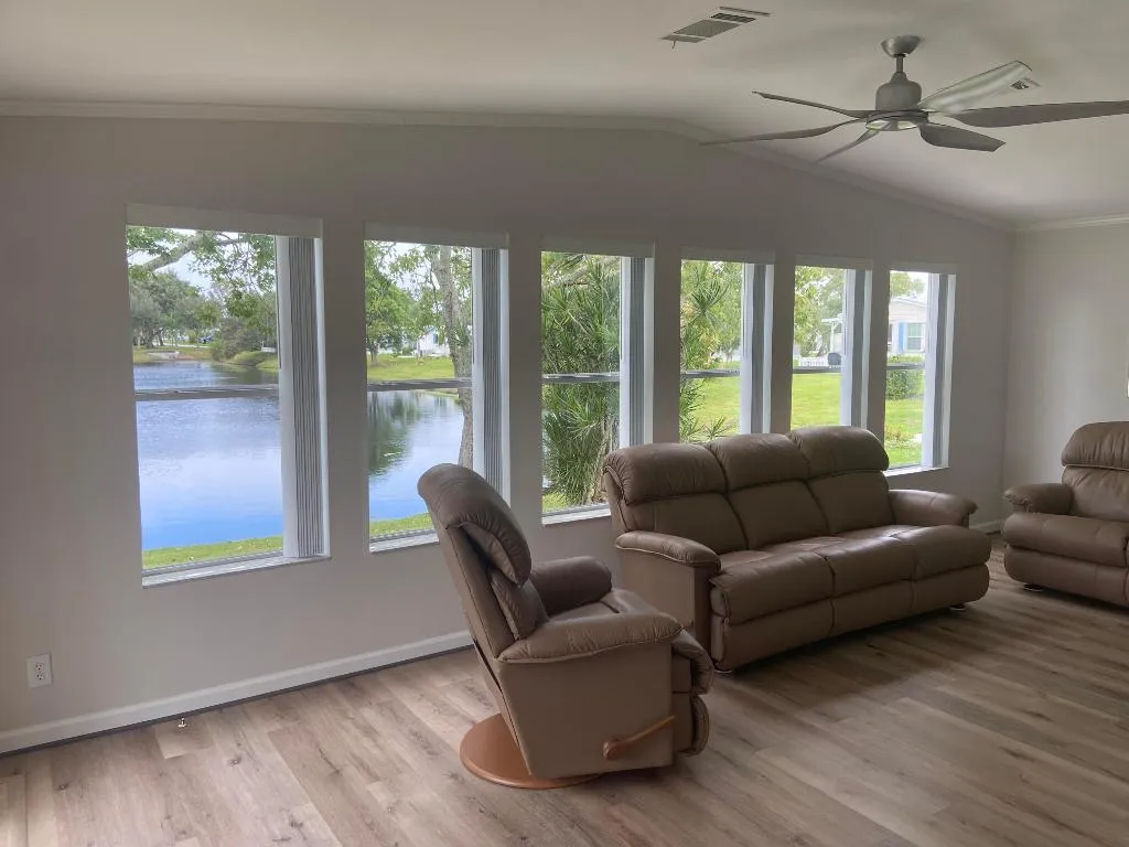 Drastic Price reduction!!! PET friendly lake lot walking distance to the active clubhouse with pool, tennis, pickle ball and numerous activities in this great 55+ community! Offered fully furnished and fully updated as shown, with indoor laundry. There is a boat launch with access to Saint Lucie River and to the intercoastal. Great fishing and ever-changing views of the sunsets! This 2006 Palm Harbor model will not disappoint with new central air unit 2024, vaulted ceilings and great ambient lighting including skylights in both baths! Sitting on leased land, will require residency approval from Spanish Lakes 55+ communities that we will walk you through. Please call ME today to schedule your showing as this one won’t last long! Be the lucky homeowner of this beautiful pristine home PRICE REDUCED DRASTICALLY DUE TO UOT OF STATE MOVE!!!!