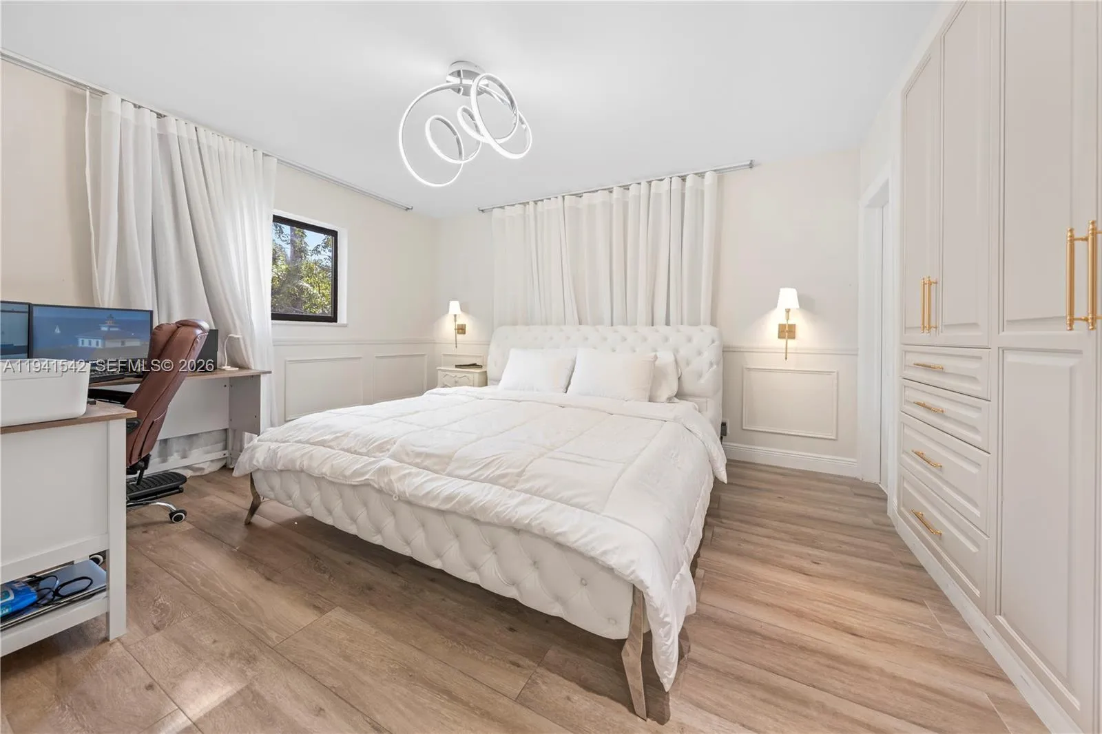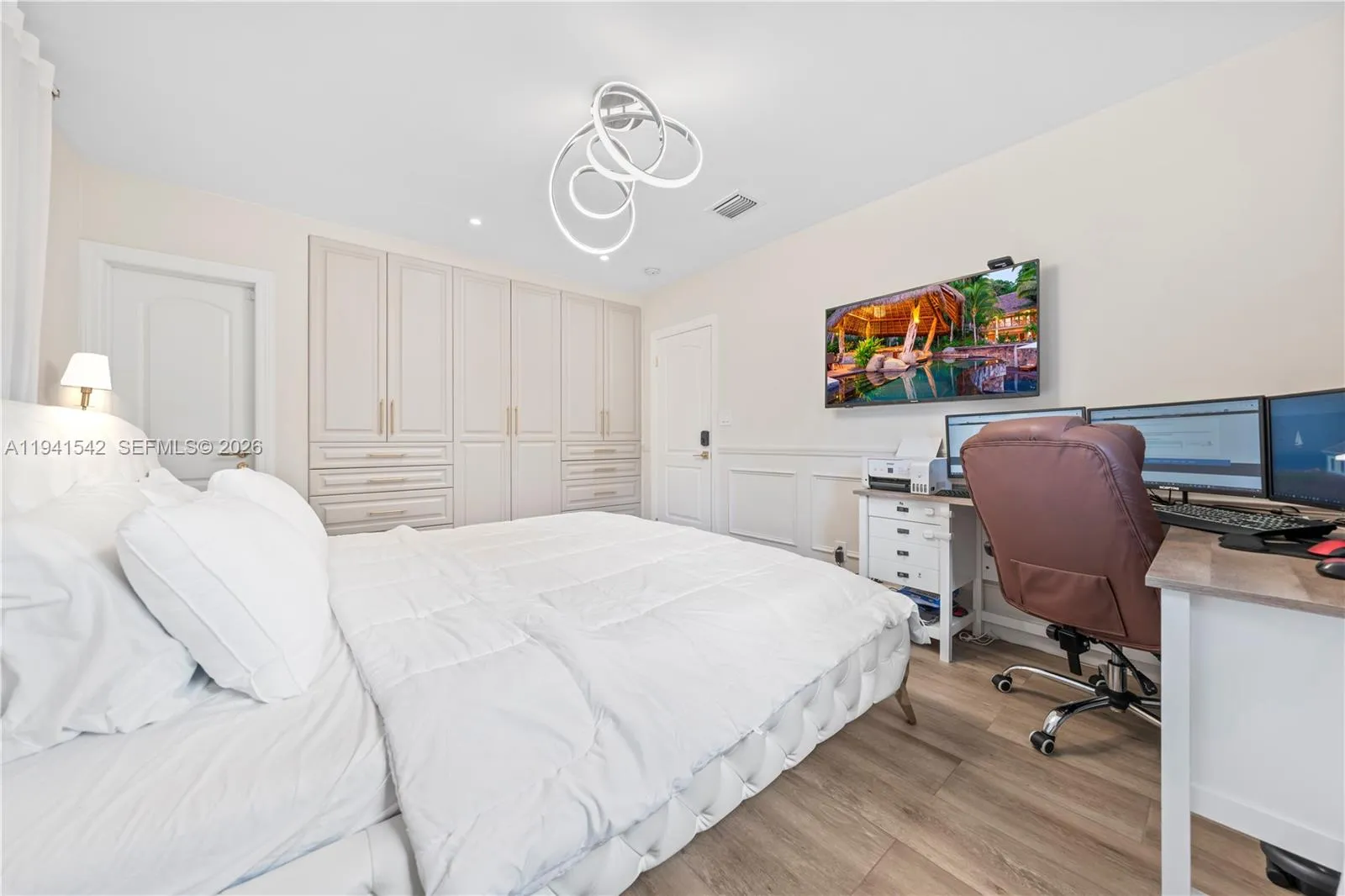 Located in Hollywood Lakes, one of Hollywood’s most sought-after and exclusive neighborhoods, this beautifully curated residence showcases refined craftsmanship, timeless design, and exceptional future potential. Designer-grade finishes include oversized polished porcelain flooring with natural stone veining, a striking decorative stone inlay at the entry, and custom millwork, wall paneling, and detailed trim throughout. The living area features custom built-in shelving, a sleek modern fireplace, and elegant lighting that enhances both warmth and sophistication. The kitchen offers custom furniture-style cabinetry, brushed brass hardware, a distinctive patterned tile backsplash, stainless steel appliances, and a sculptural hood. The sale includes preliminary architectural plans for a future expansion featuring additional living space, a second level, outdoor entertaining areas, and a pool concept. Plans are provided for buyer convenience; execution and permitting to be completed by purchaser if desired.