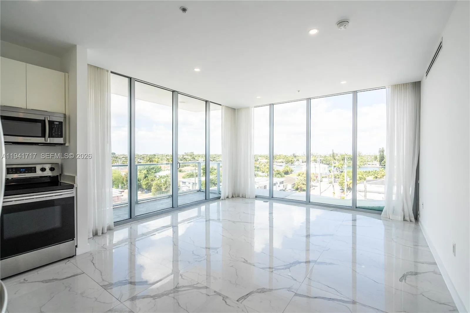 **MOVE IN SPECIAL FOR QUALIFIED APPLICANTS!**Move-in NOW with just 2 months.**Live the luxurious life @ the Nobe Marina, a fully constructed waterfront boutique building. Enjoy this breathtaking corner 1 bedroom apartment with wall of glass overlooking the skyline. Just a short walk to the beach & the 36 acre North Beach Oceanside Park. This residence features handpicked designer trends: modern kitchen w/ SS appliances + dishwasher & polished marble flooring throughout, chic & spacious modern bath, large walk-in closet, in unit washer & dryer, floor to ceiling IMPACT windows, private balcony, modern light fixtures, & central A/C! Includes one secured covered parking space. This gated building offers secure intercom system, Kayak/SUP storage, amenity deck with lounge chairs, BBQ and EV chargers. Pets welcomed! Water billed accordingly. Check out the VIRTUAL TOUR!
