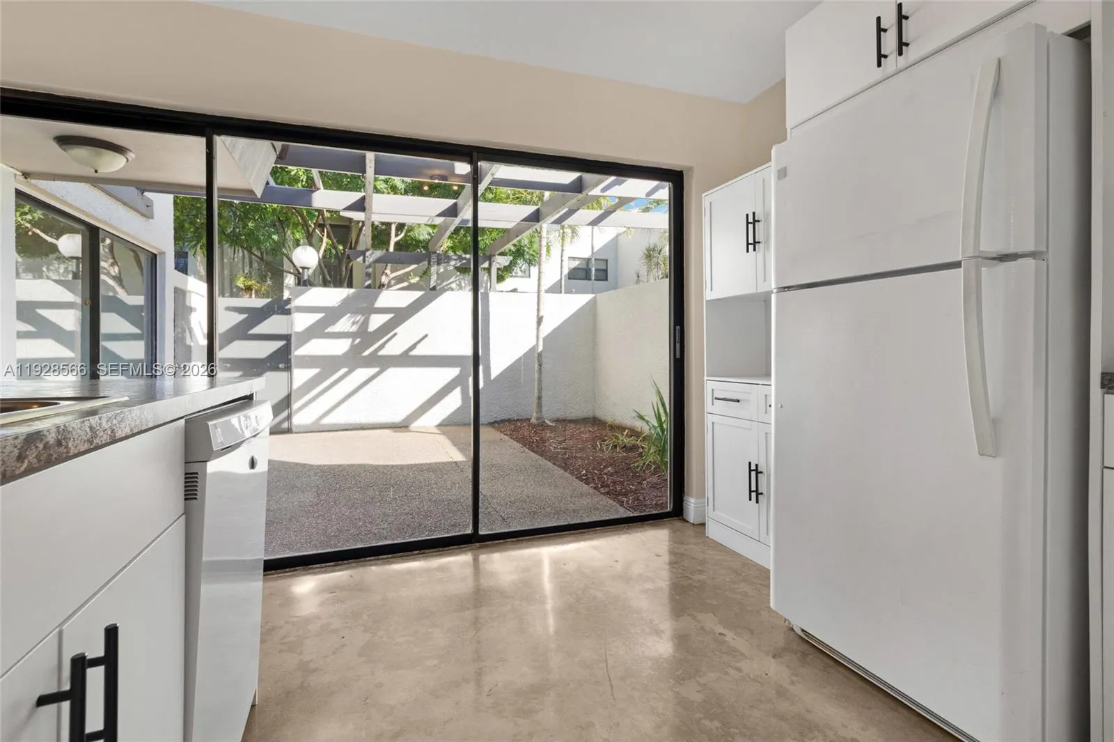 Welcome home to this beautifully maintained 3-bedroom, 2.5-bath townhouse located in a lush, gated community in the heart of South Miami. Surrounded by tropical landscaping, this residence offers a serene and private setting with the convenience of city living. The home has been freshly painted, is clean and move-in ready, and features new window treatments throughout. The floors showcase a modern concrete finish, adding a sleek, contemporary touch. The kitchen has been recently updated with new cabinetry. Enjoy a private walled patio, ideal for outdoor lounging or entertaining, plus a balcony off one of the bedrooms for added charm and natural light. The unit also includes a washer and dryer inside the home for added convenience. Offering approximately 1,349 square feet, this spacious layout includes two assigned parking spaces. The community features multiple swimming pools and beautifully maintained grounds. Available ASAP—a wonderful opportunity to live in a peaceful, well-kept South Miami community close to shopping, dining, parks, and major roadways. Tenant is responsible for Utility bills: Water and FPL.