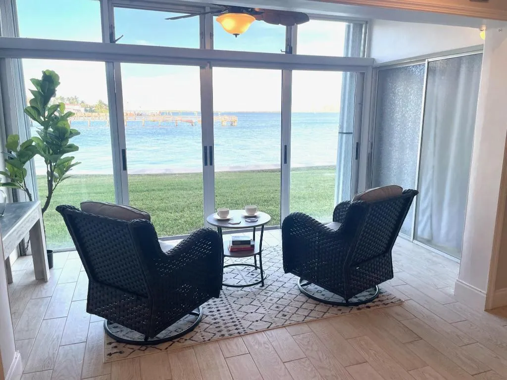 Waterfront Living at Its Finest – Ground Floor 2 Bed/2 Bath Condo!rnrnWelcome to your serene slice of paradise! This beautifully maintained 2-bedroom, 2-bathroom condo offers direct waterfront views and the convenience of first-floor living—no stairs, no hassle.rnrnStep inside to find a bright, open-concept layout featuring a spacious living area that flows seamlessly to a Florida room—perfect for enjoying morning coffee or evening sunsets by the water.rnrnCURRENTLY RENTED FOR SEASON 2025-2026 DECEMBER-MARCHrnAVAILABLE AGAIN MARCH 2026//90 day minimum rentals