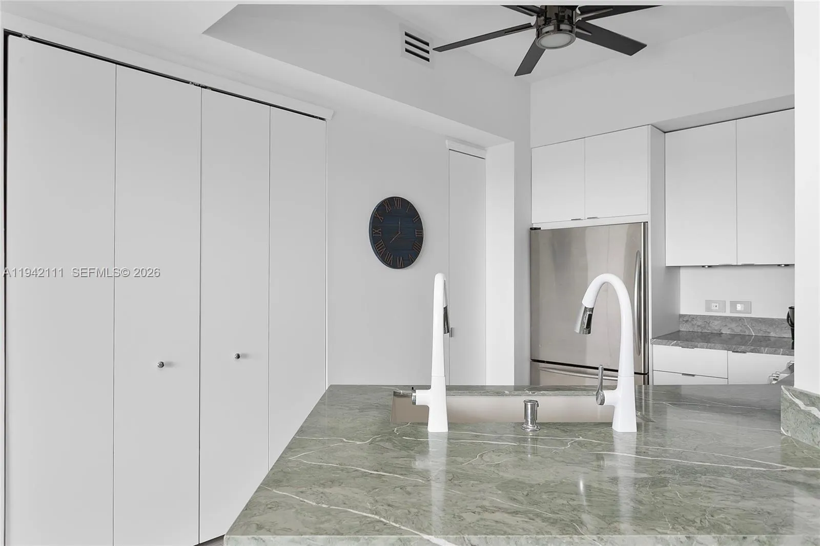 Stunning Penthouse unit in Turnberry Village offering breathtaking panoramic views of the Turnberry Country Club Golf Course and the city. This spacious 2-bedroom, 2-bathroom residence features walk-in closets, a recently renovated open kitchen with modern finishes, and cutting-edge technology throughout. Enjoy electric blackout curtains and roller shades, Google Nest thermostat, Nest doorbell & camera, and impact windows. The building boasts a sleek infinity pool, state-of-the-art gym, and stylish common areas. Ideally located near A+ schools, Aventura Mall and the beach. Furniture includes modern navy wood pieces, .