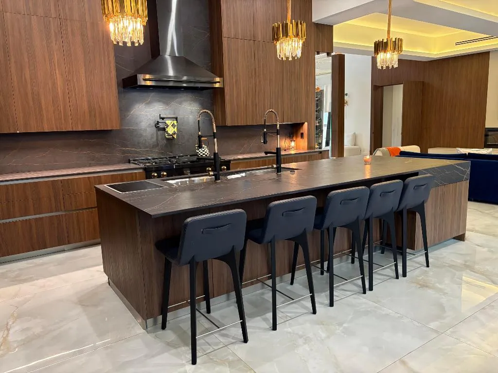 Welcome to a masterpiece of modern elegance set on a coveted double lakefront lot in Parkland’s premier community. A dramatic 34-foot entryway with soaring ceilings, sculpted pillars, soffit detailing, and Restoration Hardware chandeliers creates a breathtaking first impression. The interiors are defined by 48×48 Crystala marble flooring, ambient designer lighting, Azori cabinetry, walnut leather wall panels, and striking Dekton countertops, blending warmth and contemporary sophistication.rnrnThe gourmet kitchen flows effortlessly into expansive living spaces designed for both grand entertaining and intimate gatherings. A versatile front office with a private bath can serve as a guest suite. The primary suite on the main level is a serene retreat, featuring a spa-inspired bath with black marble tile, soaking tub, walk-in shower, and an oversized dressing room. Upstairs, two ensuite bedrooms open to private balconies with tranquil lake views, complemented by a loft overlooking the elegant living areas below.nnOutdoors, experience true resort living in the oversized backyard oasis, showcasing a spectacular pool, jacuzzi, and lounge areas framed by tropical landscaping and architectural hardscape design. Additional features include a 3-car air-conditioned garage, 2022 Trane HVAC, impact glass, 2017 roof, linear vents, and tiled columns. This exceptional residence embodies timeless luxury and sophisticated design at every turn.