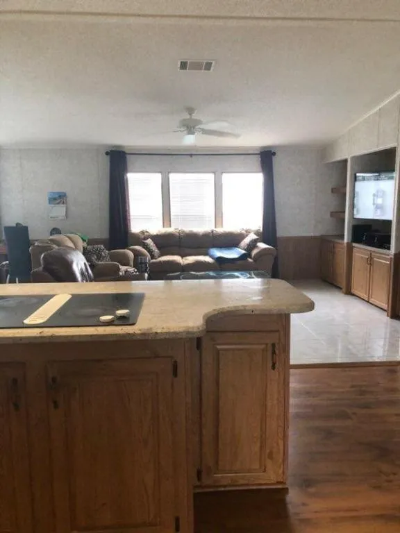MOTIVATED SELLER Looking at all offers immaculate,in great condition and Spacious home 3/2 Living Room and dining room family room and kitchen are all an open concept with tile and wood floors, Kitchen overlooking family room with a granite island with stovetop and kitchen has granite and lots of cabinets. Large bedrooms and all have walk-in closets. Laundry room with newer front load washer and dryer. Screened in patio with tile floors big screened TV and installed a/c