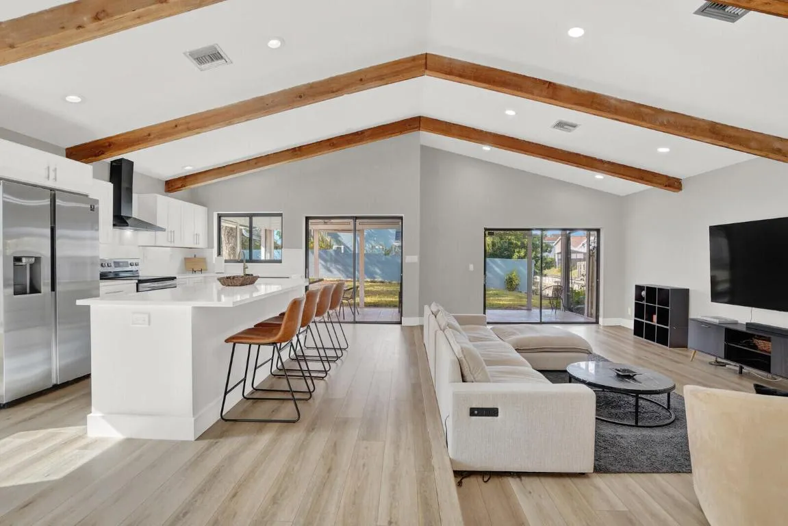 This home offers everything you are looking for. From a large yard with outdoor patio to a dock for your 19 ft boat to navigate Lake Ida and the surrounding waterways. Pets are welcome! Impact windows, beautiful remodeled kitchen, open concept, two car garage, and a gated community that offers pool, tennis courts/pickle ball, basketball, miles of walking trails. 3 miles from the beach and popular Atlantic Ave.