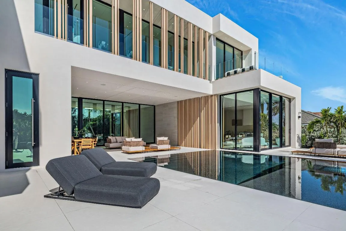 Showcasing refined modern architecture and rich natural materials, this exceptional six-bedroom custom residence by Ocean Blue Custom Homes reflects understated sophistication. Thoughtfully crafted with a minimalist sensibility, the home features gallery-like interiors and a seamless balance of warmth and contemporary design. Set within a tranquil natural enclave along a protected basin of the Intracoastal Waterway in coveted Point Manalapan, the property offers direct waterfront access complete with a private dock. The setting is both serene and exclusive, creating an ideal backdrop for elevated waterfront living.