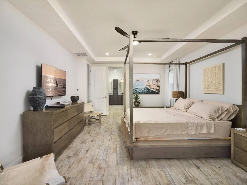 Step into this like new meticulously maintained home in the popular community of Torino in the northern section of Port St Lucie. This large newer 5 bed 3 bath 3 gar garage home is sure to impress and shows like a model home. Some of the many features include: Large custom designer kitchen with dark wood cabinets w/ soft close doors, double ovens, granite counters, stainless appliances, large island with seating for five, pendant lighting over the bar, tile plank floors throughout the home, modern fans and lighting, accent wall in living room with built-in electric fireplace, wet bar with wine cooler adjacent to the den, spacious walk-in closets, built in office in primary bedroom, stylish bathrooms with rain shower head and frameless glass doors, fashionable windows treatments, large fenced in yard, plus much much more! Schedule your private viewing today.