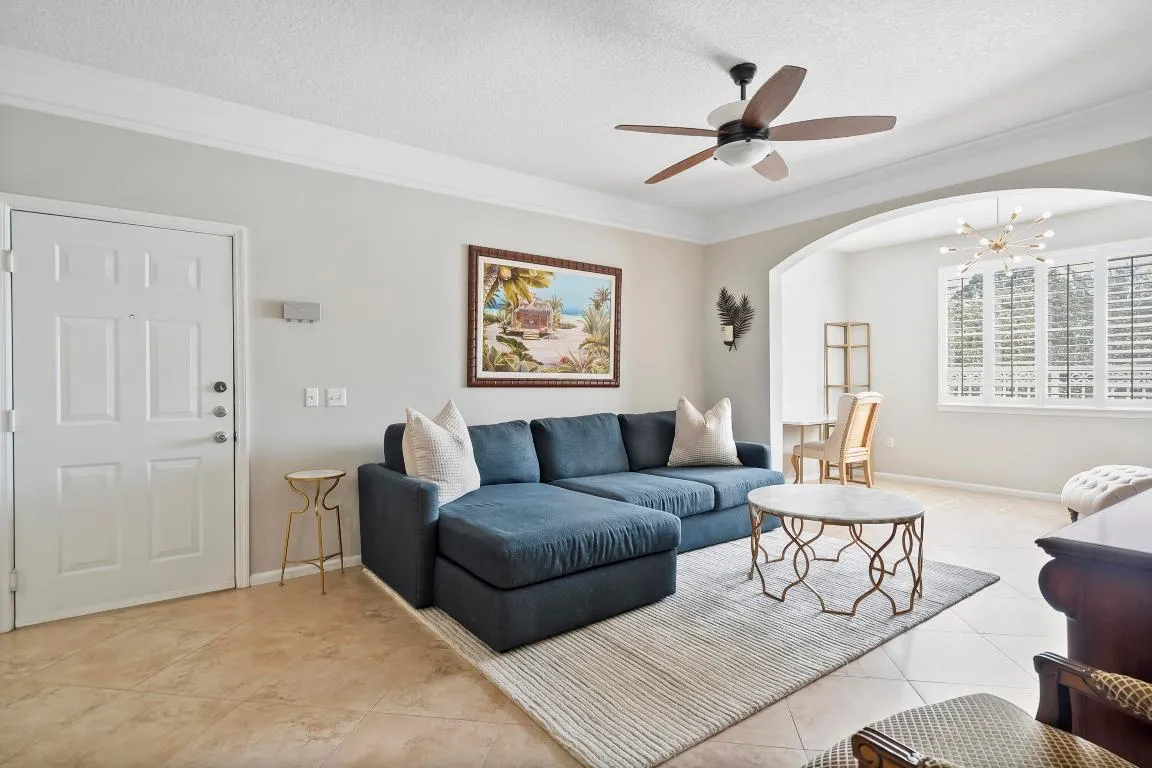 Updated, fully furnished 1 bed 1 bathroom Fiore condo located in the heart of Palm Beach Gardens, near restaurants, shopping, Alton town center and major highways. This tastefully furnished condo offers the largest 1 bedroom floorplan, tile floor throughout, updated kitchen, full washer and dryer, newer AC and bonus sun room. Fiore offers resort style living with an incredible community pool, outdoor dining and BBQ spaces, putting green, fitness center and playground.