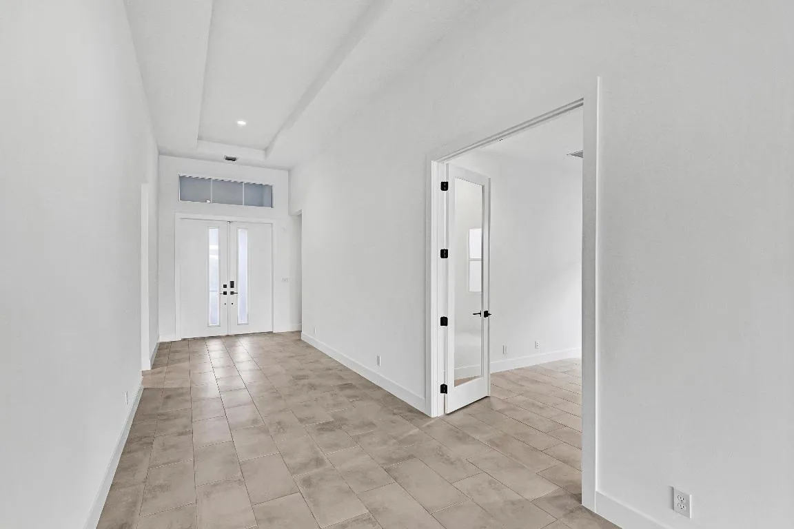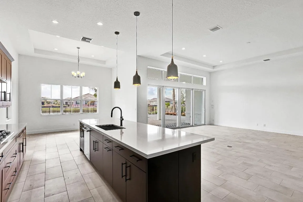 Welcome Home! Pool with Lake View! Step into this stunning residence featuring a grand foyer with soaring 12-foot ceilings and a bright, open-concept design. Gorgeous LVP flooring flows seamlessly throughout, leading you into the expansive living area. Just off the entry, a sunlit study with glass French doors offers space for a home office or library. The chef-inspired kitchen impresses with stylish two-toned cabinetry, a walk-in pantry. The luxurious primary suite showcases white shaker cabinetry, a spa-like bath with a drop-in soaking tub, a walk-in shower with bench, and a spacious closet. A conveniently located powder bath adds comfort for guests, while secondary bedrooms provide ample space for family or visitors.
