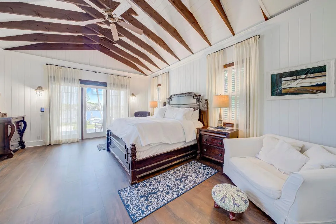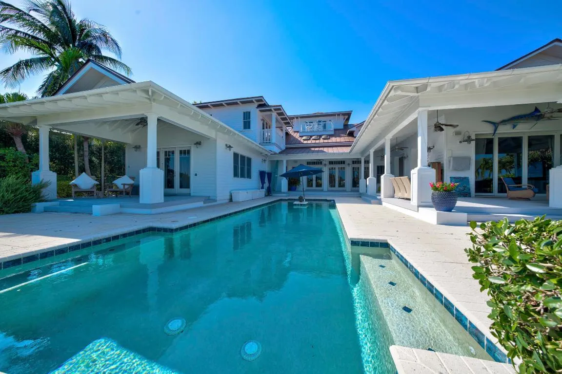 Exclusive waterfront living. Live like a pro in this luxurious waterfront home.rn Welcome to your dream escape! This stunning furnished home on the Loxahatchee River in picturesque Jupiter, Florida, is the epitome of coastal elegance and charm. Designed with a light and bright ambiance, this residence offers an inviting blend of sophistication and relaxation, perfect for those seeking a serene retreat.rnStep inside to discover elegant, coastal-inspired interiors featuring open-concept living spaces with wide panoramic 1 mile views of the sparkling river. Expansive windows flood the home with natural light, showcasing the breathtaking scenery and creating a seamless indoor-outdoor flow. The thoughtfully curated furnishings exude modern coastal charm, with soft neutral tones, natural textures, and subtle pops of seaside blues and greens. The fully equipped chef’s kitchen boasts top-of-the-line appliances and ample space for entertaining, while the living and dining areas open to spacious outdoor terraces where you can soak in the tranquil river vistas.nUnwind in the luxurious primary suite, complete with private, old world style back porch overlooking the river with a spa-inspired ensuite bath. Additional guest rooms provide comfort and privacy, each beautifully appointed for your guests’ enjoyment. Your family and guests will spend endless hours in the nicely equipped billiard and game room.nOutside, the property offers direct water access, perfect for boating, paddleboarding, or simply enjoying the peaceful setting. Lounge on the sun-drenched deck, entertain by the waterfront, or take in the evening sunset from 2 private docks, one which accommodates a vessel size up to 40 ft and 20,000 pounds with a 3 ft draw at high tide, the smaller lift holds up to 10,000 pounds and a 24-foot boat. Enjoy the sweeping views of the Loxahatchee River that extend over a mile to the Jupiter Lighthouse.nConveniently located near Jupiter’s best dining, shopping, and beaches, this luxurious rental is a true gem, offering the perfect blend of relaxation and lifestyle.n Nestled on nearly an acre lot, this 5-bedroom, 7-bath masterpiece offers everything you need to live, entertain, and relax in style.nThis 3-story Florida Cracker-style home, designed to modern specifications, boasts an end-of-point location facing SSE, ensuring refreshing summer breezes and breathtaking, mile-long views of the Loxahatchee River.nProperty Highlights:n” Elevator for seamless access to second floorn” 3rd-floor widow’s walk with panoramic views n” Anderson windows providing abundant natural lightn” Gipcrete layer between floors for added comfort and privacyn” 4-car air-conditioned garagen” Game room with billiards table for entertainmentn” Adequate space for a hitting bay in garage for the enthusiastn” Complete gym with pull-up bar, treadmill, rogue bike and a n rowern” Putting Greenn” FirepitnOutdoor living is redefined with ample space for enjoying the waterfront setting, all while being surrounded by the beauty of Pennock Point. This home offers the perfect balance of coastal charm and modern luxury.nSchedule your private tour today and step into the lifestyle you’ve been dreaming of!