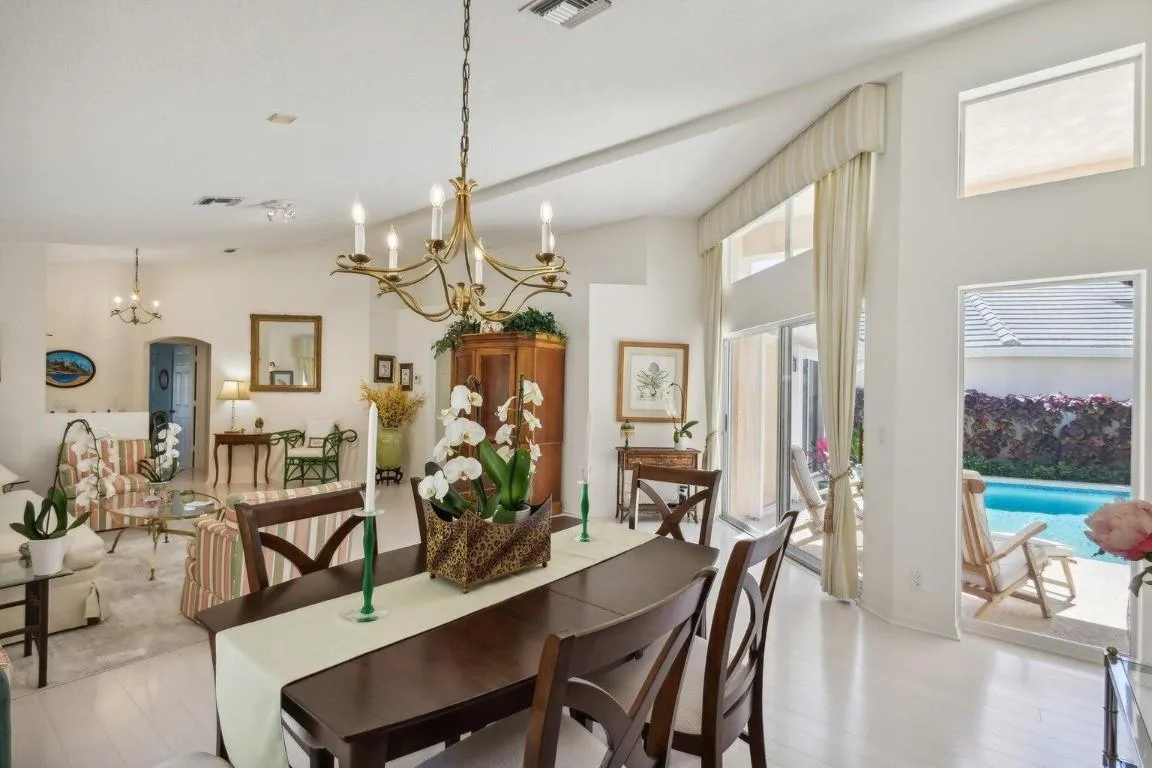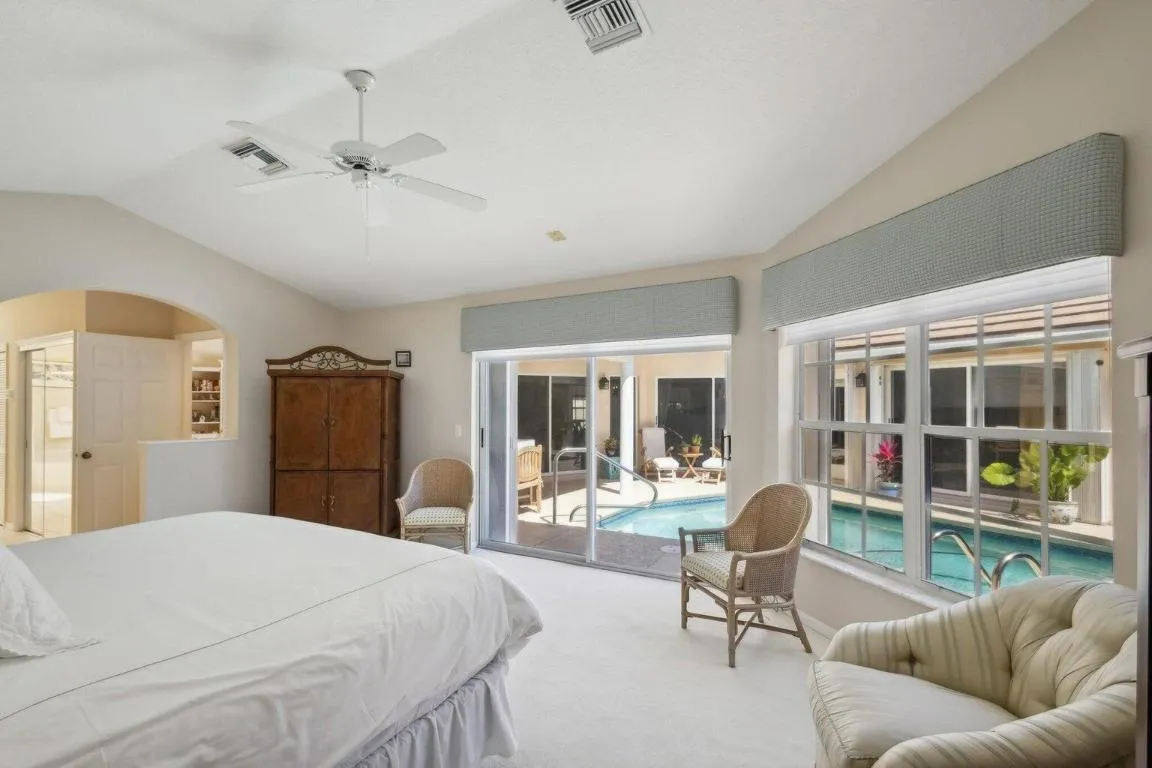 Rare seasonal rental in Jonathan’s Landing! Nestled within the exclusive Riverwind community, this single-family home with a pool presents an unparalleled opportunity to spend the winter months in South Florida. With a thoughtfully designed split floor plan, this residence boasts 3 bedrooms and 3 full baths, ensuring ample space and privacy for all occupants. Upon entering, the allure of new hardwood floors throughout the spacious floor plan immediately captivates. Vaulted and volume ceilings further enhance the interior’s sense of openness, while custom built-ins add both style and functionality to the living spaces. At the heart of the home lies the large eat-in kitchen, showcasing updated stainless steel appliances and a new dishwasher. Outside, the home embraces the essence of tropical living with its beautifully surrounded in-ground pool. There are not many rentals to come on the market like this in Jonathan’s Landing!