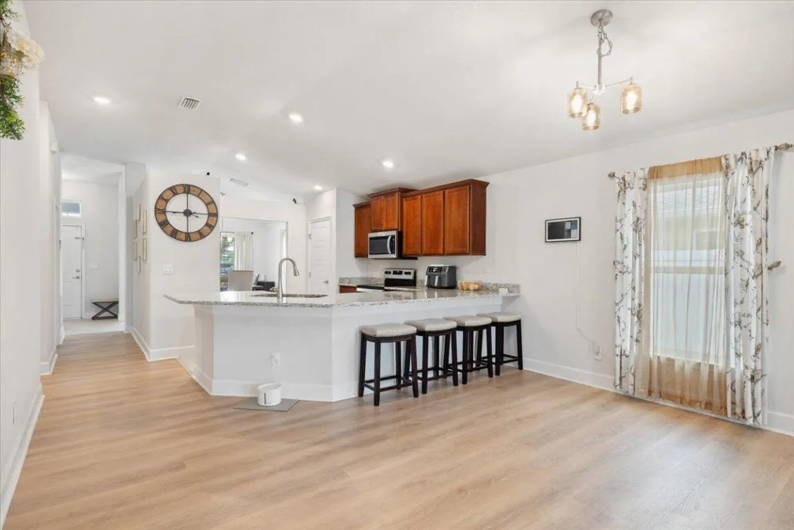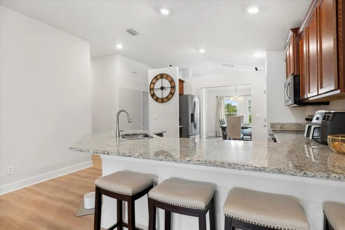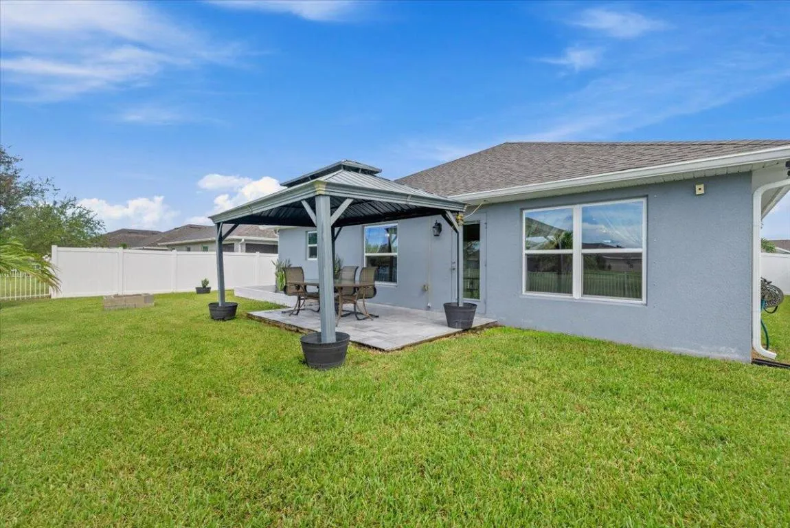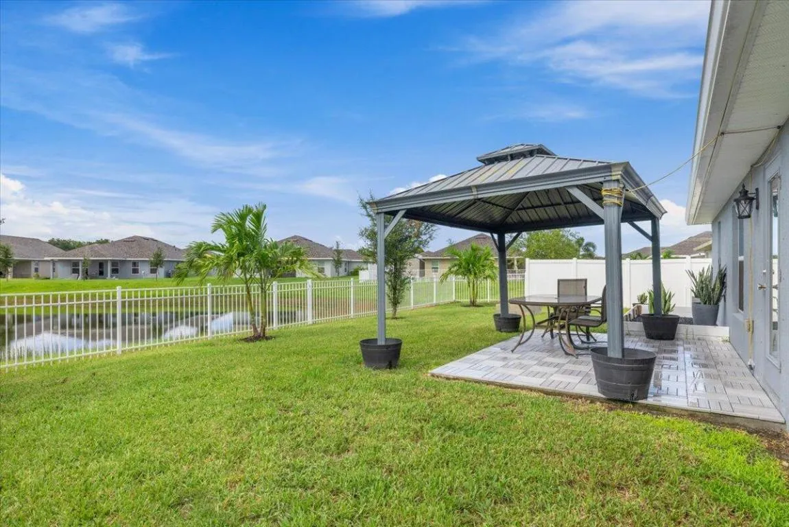 Welcome to Waterstone—a vibrant community where modern convenience meets serene waterfront living. This stunning 4-bedroom, 2-bathroom home with a massive 620sqft 3-car garage, built by Adams Homes in 2021, sits on a premium lot offering peaceful water views and thoughtful upgrades throughout. Step inside to an open floor plan adorned with LifeProof Dusk Cherry vinyl plank flooring and a gourmet kitchen featuring a peninsula-style granite countertop, ideal for casual dining or entertaining. The home’s upgrades blend style and function—a hybrid heat-pump water heater (2022) for energy efficiency, solar panels by Windmar Solar financed through Sunnova, and a smart home system complete with Alexa-compatible switches, thermostat, and Blink outdoor cameras for peace of mind. The owner has added numerous touches to elevate comfort and style: a backyard pergola, Christmas palms (front and back), fresh landscaping with pavers and rock accents, and a fully fenced yard with three gated access points installed in 2022. Even the smallest details were consideredgutters, a Simplisafe alarm system, and labeled hurricane shutters for easy installation are all in place. Enjoy modern comforts like the fiberglass shower in the primary bath, garden tub in the guest bath, and top-tier appliances including a Whirlpool French door refrigerator and Samsung washer/dryer set (all 2021). Additional features include an Acura EV charger (2025), trimmed oak trees, and low HOA fees of only $12/month under Atmos Living Management Group. Every inch of this home was designed for comfort, style, and practicalityoffering a turnkey lifestyle in one of the area’s most desirable communities. Perfectly situated between Vero Beach and downtown Fort Pierce, you’ll enjoy quick access to beautiful beaches and the fun-fishing inlet/jetty! Plus, you’re just minutes from both I-95 and US-1, making commuting a breezewhether it’s for work or a weekend getaway.