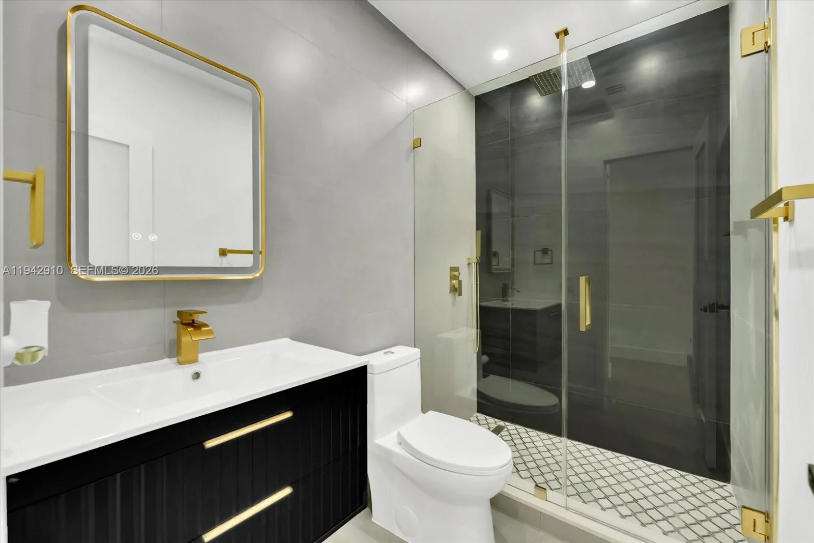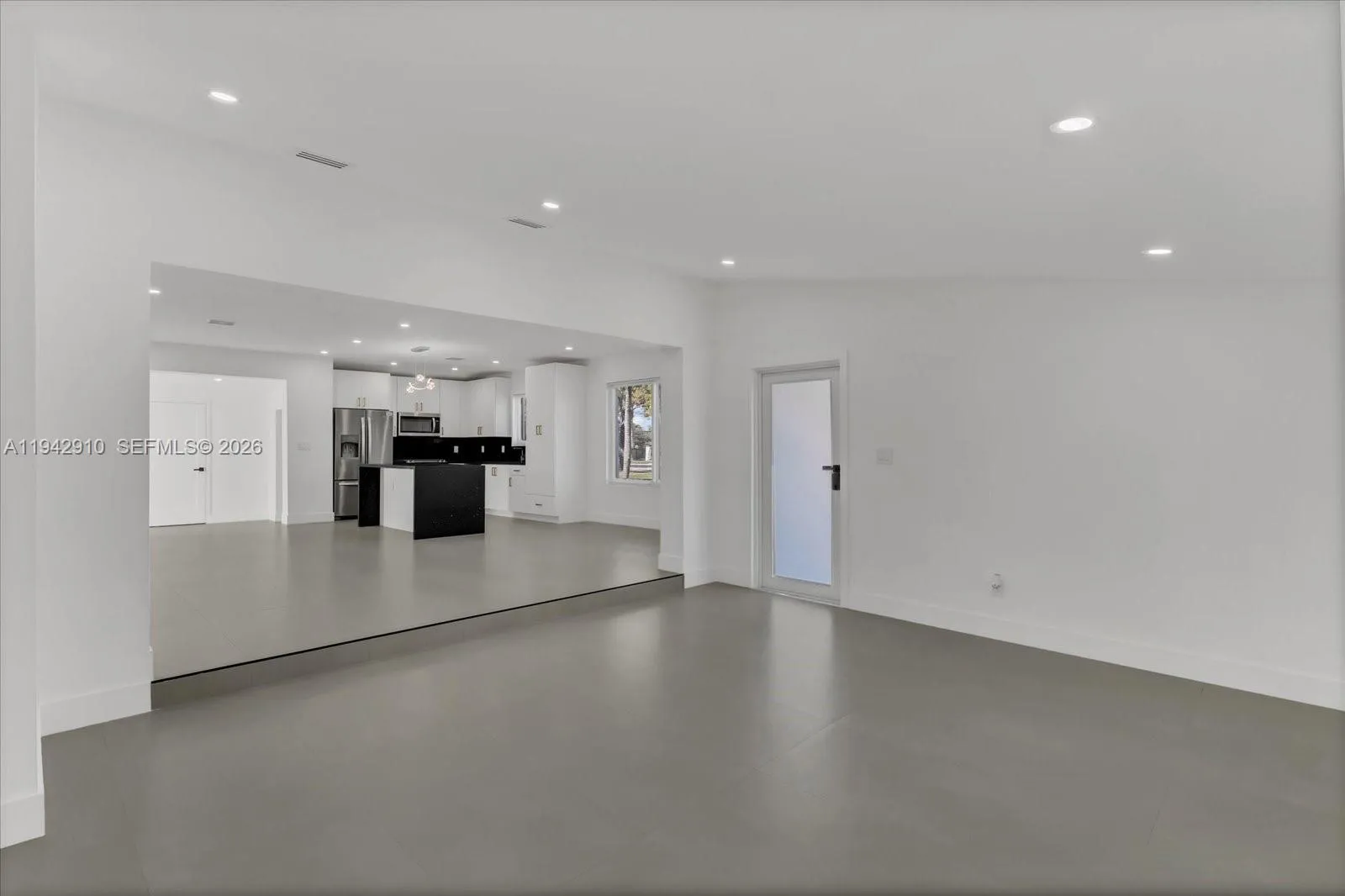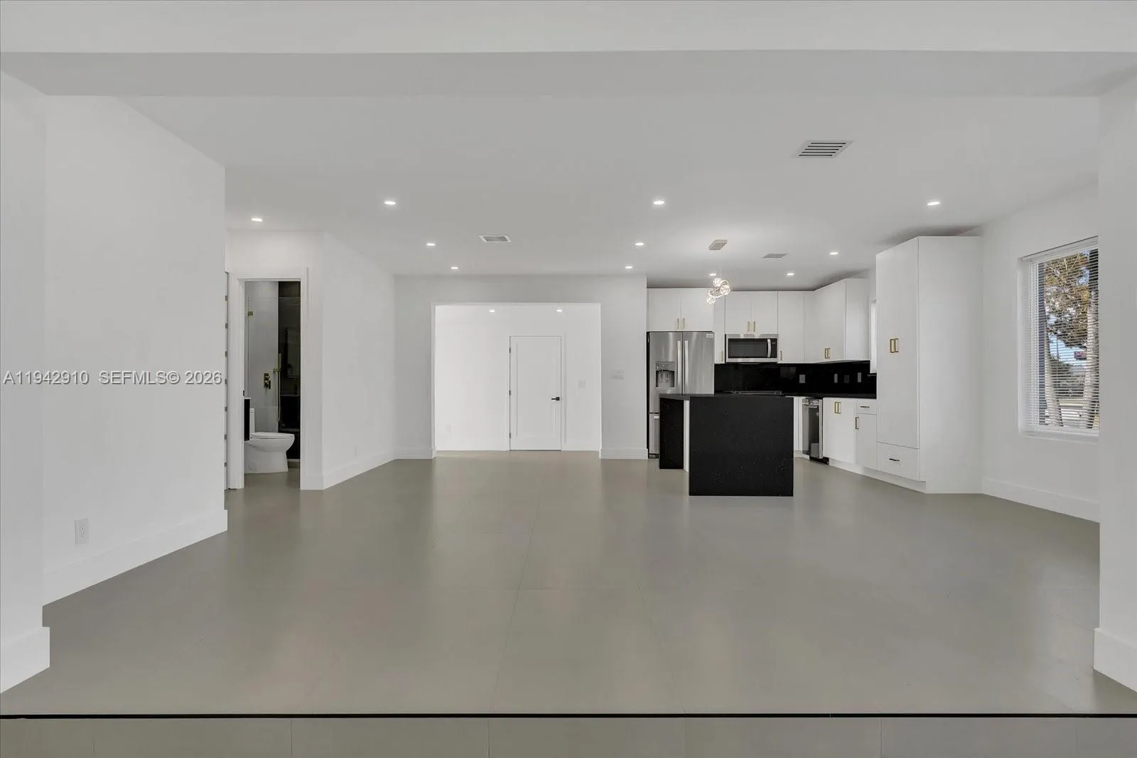 Welcome to your fully renovated home featuring a spacious open-concept layout with modern finishes throughout. The designer kitchen offers white cabinetry, quartz countertops, stainless steel appliances, and a large waterfall island ideal for entertaining. Bright living areas showcase recessed lighting, oversized tile flooring, and seamless flow between spaces. Sleek bathrooms include frameless glass showers, contemporary tile, and elegant fixtures. Generously sized bedrooms provide flexibility for guests, office, or den. Additional highlights include a one-car garage, dedicated laundry room, covered front entry, and a private backyard with mature fruit trees. Conveniently located near I-95, Turnpike and other major roads.