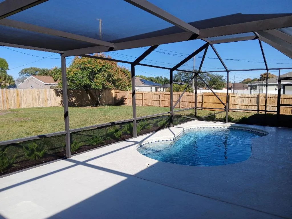 Discover this updated CBS 3/2 pool home! This home boasts NEW kitchen with soft close wood cabinets, quartz tops and SS appliances! NEW 5v metal roof. NEW AC equipment. NEW HWH. New vinyl plank flooring. New paint in and out. New fans and fixtures. Both baths updated! Screened pool overlooks large fenced yard!