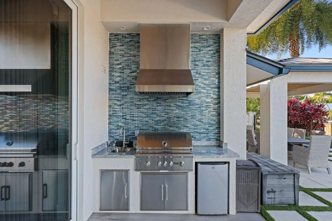 Premier,waterfront Coral Ridge Country Club home,expanded,fully remodeled and completed in 2018. 90′ concrete dock,boat lift-15,000 lbs. Ocean access,no fixed bridges. Covered pergola with dining area,outdoor kitchen on covered patio. 5 bedrooms,3 full bath. Thermador appliances,gas range. Custom closets ,include a cedar lined one. Vaulted,wood ceilings in main area and patio,ship lap in the entry and family room, and coffered ceilings. 2 acs 2024/2025,impact glass/doors for the entire home,tankless hot water heater 2017,metal roof 2017,pool 2018. 2 car garage,epoxy floor,Garagetek,EV charger. 150-bottle wine cooler in bar. Walk to parks,restaurants,golf,beach-offering the Florida lifestyle at your doorstep. Bring your boat and move right in, with fishing, paddle boarding in your backyard.