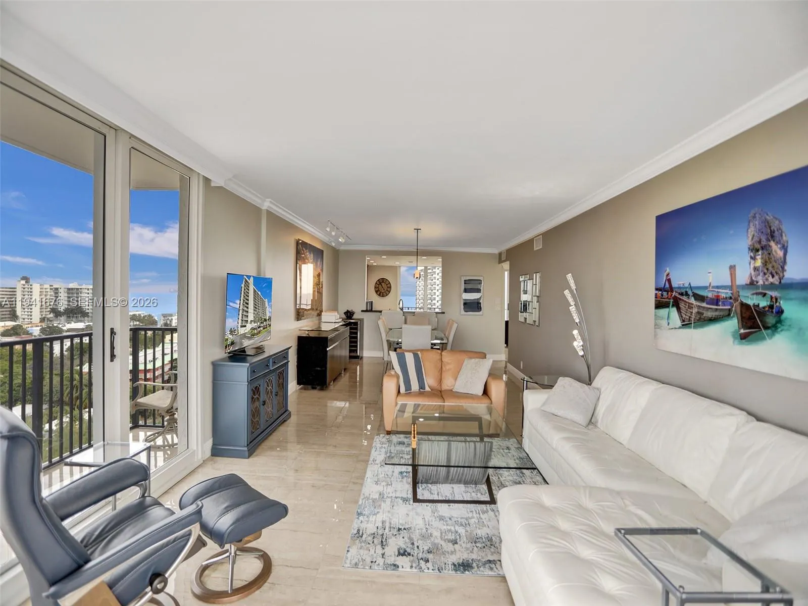 Available for seaonal rent (minimum 3 months). Top-floor corner residence with sweeping Intracoastal and ocean views in the desirable Silver Thatch Intracoastal. This spacious 3-bedroom, 2-bath unit offers nearly 1,900 sq ft of bright, open living space with a split-bedroom layout and expansive windows that flood the home with natural light.rnrnEnjoy uninterrupted water views from the living and dining areas, ideal for both relaxing and entertaining. The functional kitchen features ample cabinetry and quality appliances, perfect for everyday living. The primary suite includes generous closet space and a private bath, while two additional bedrooms provide flexibility for guests, a home office, or family use.rnrnImpact windows offer comfort and peace of mind. Assigned parking plus guest parking included. Waterfront community amenities include a heated pool, fitness center, sauna, BBQ and picnic areas, community room, extra storage, and community boat dock.rnrnIdeally located minutes from the beach, dining, shopping, and major roadways. Experience coastal living with space, privacy, and panoramic views from a top-floor corner unit in one of Pompano Beach’s most established Intracoastal communities.