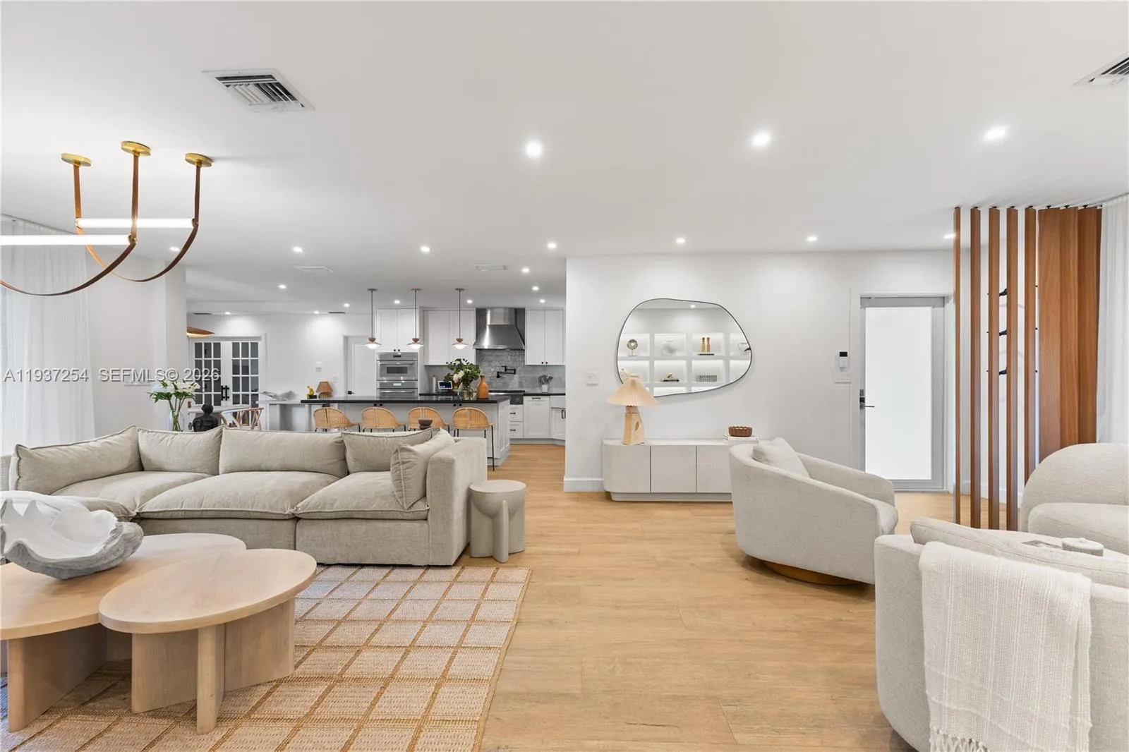 Welcome to this beautifully renovated and fully furnished residence offering modern luxury with 4 bedrooms and 3.5 bathrooms. The home features porcelain tile floors, recessed lighting, custom millwork, and bespoke closets throughout.rnOriginally a 1,300 SF home, it has been thoughtfully expanded to 2,478 SF, including a stunning 600 SF primary suite. The addition also incorporates a formal dining room, laundry room, a fourth bedroom with en-suite bath, and a convenient cabana bath.rnrnThe chef’s kitchen is equipped with Thermador appliances, custom cabinetry, and premium finishes. Additional upgrades include central A/C with two new units, new propane tank, new hot water heater, and updated PVC plumbing.rnThe exterior offers a private backyard oasis with a new heated pool, new deck, refinished semi-circle driveway, additional side driveway, new landscaping, tiled front porch, and a new privacy fence. The property is pre-wired for a generator.rnOffered fully furnished, the home includes a curated selection of high-end furniture from Poterry Barn, West Elm, Crate & Barrel, and other top-tier brands, allowing for a truly turnkey, move-in-ready experience.The owner thoughtfully designed and renovated the entire home for his family, including one son and one daughter. Due to an unexpected company relocation, the property is now being sold as-is and fully furnished, with possession delivered on or after May 31.