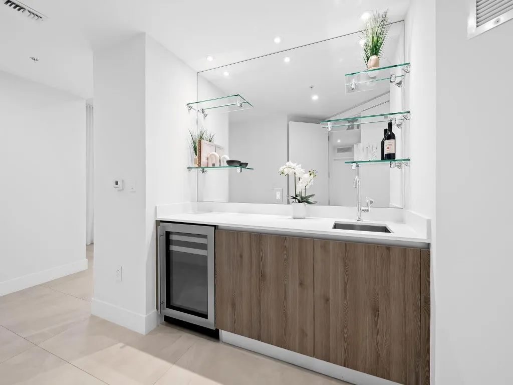 Experience breathtaking panoramic views of the intracoastal waterway, Atlantic Ocean & the Downtown Ft. Lauderdale skyline. Ideally situated on the East side of the intracoastal on the barrier island. 321 at Water’s Edge is a premier boutique building with only 23 residences. This flow through residence offers high end designer finishes, an expansive floor plan and Gaggenau appliances. The Steven G. designed lobby offers residents wine storage, a bar, dining areas, seating and a large screen TV for entertaining. The building offers five-star amenities. Valet/concierge 24/7, intracoastal front pool, jacuzzi, his & her saunas, ocean view fitness center, private marina, dog park & a community rooftop terrace complete with furnishings and a summer kitchen.
