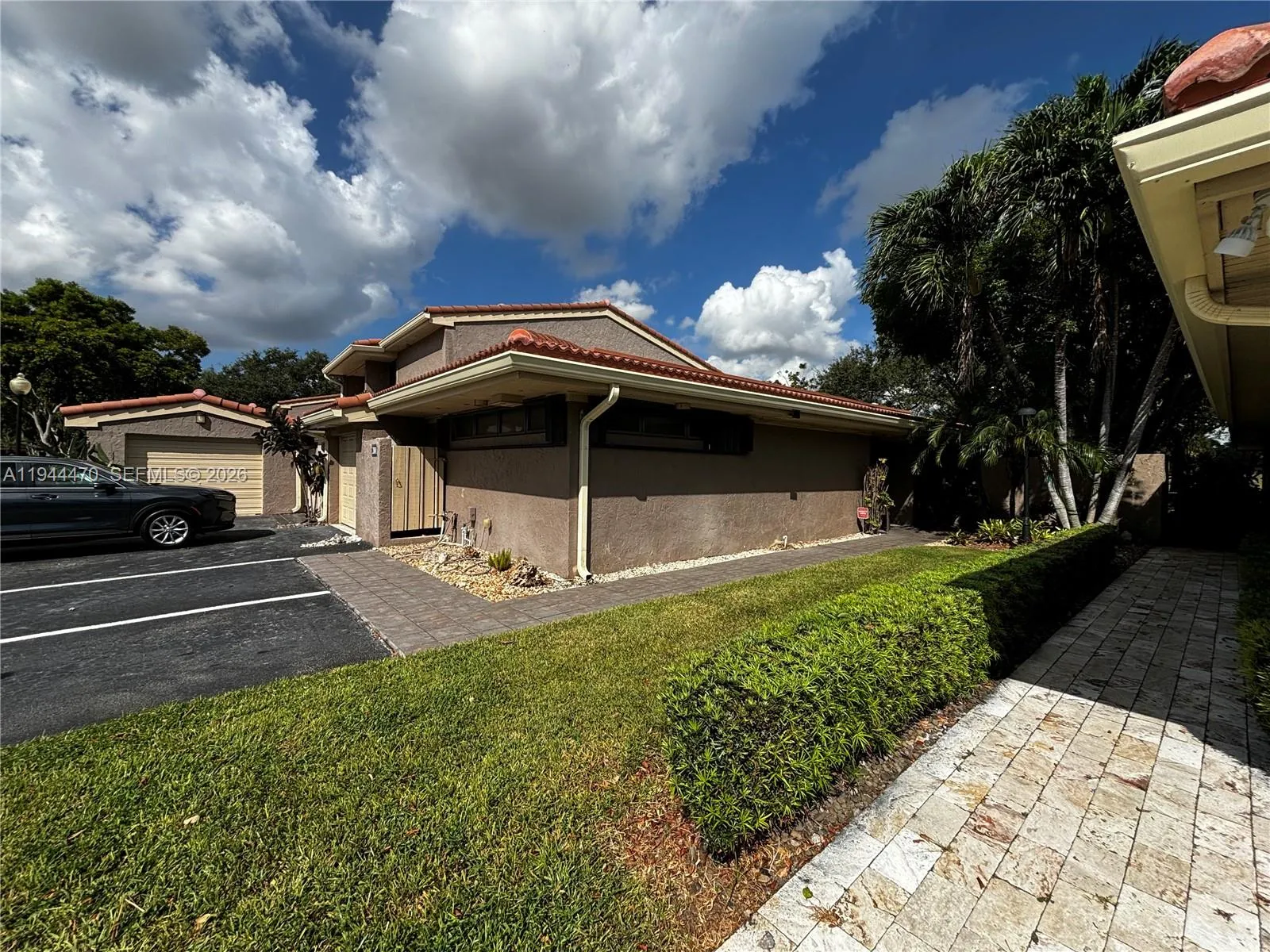 Welcome to the desirable Emerald Hills townhouses. This beautiful one-story corner villa offers an open and spacious layout with 3 bedrooms, 2 bathrooms, plus a family room. Featuring new roof from 2023, accordion shutters, tile flooring throughout and spectacular open golf course views, this home truly feels like a single-family residence. Enjoy parking directly in front along with an attached garage. Priced well below market value for a quick sale. Owner financing available.