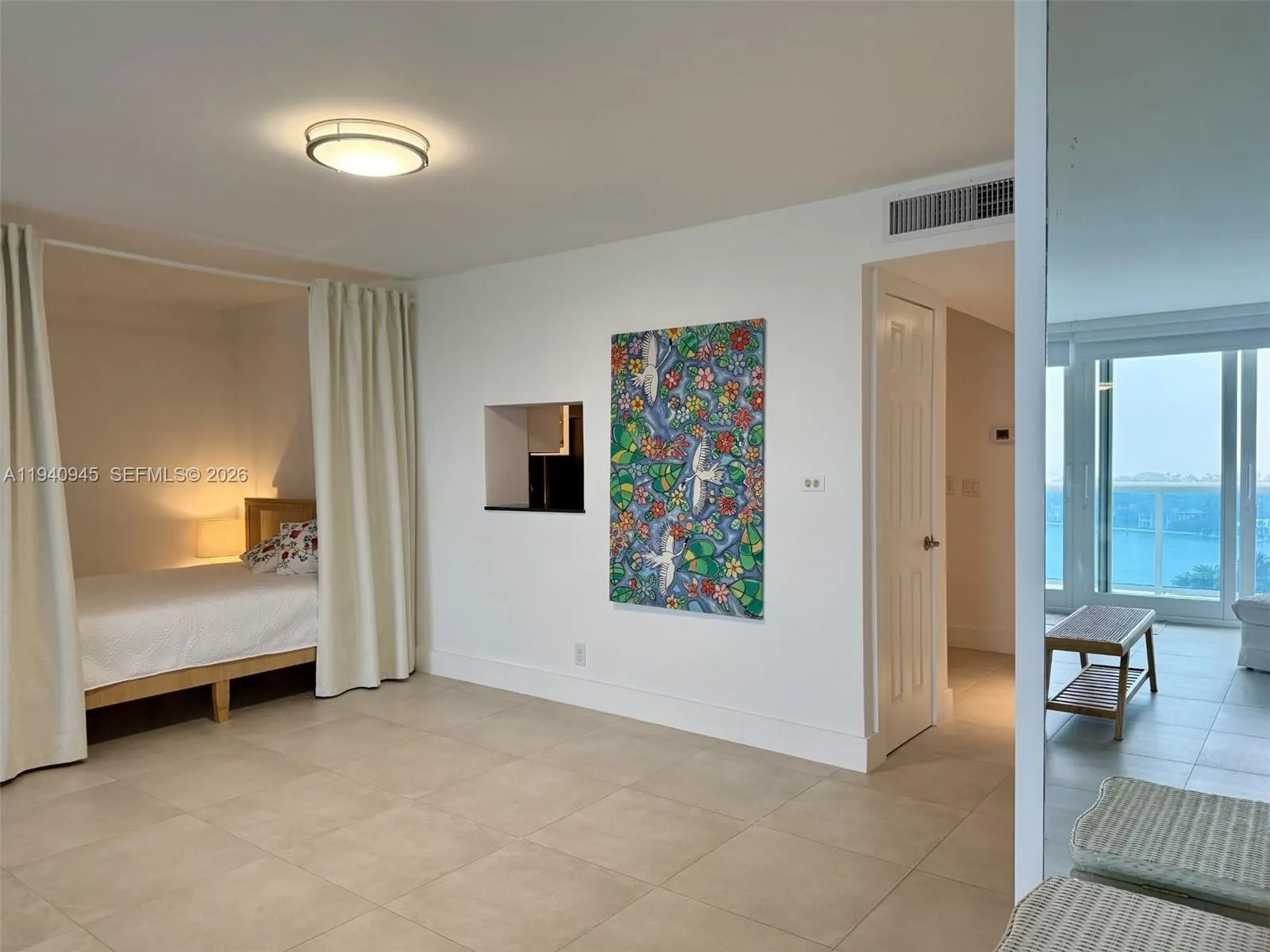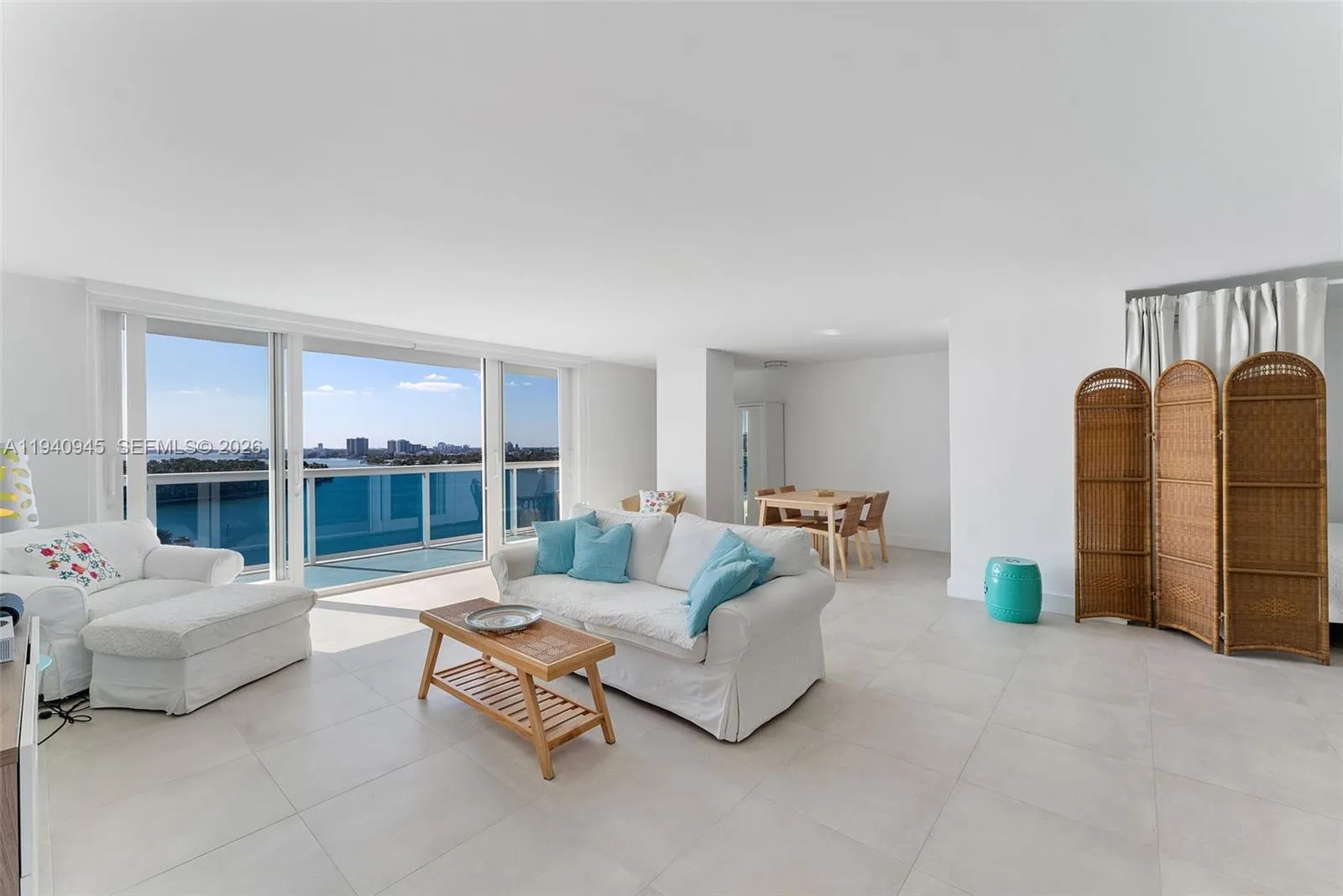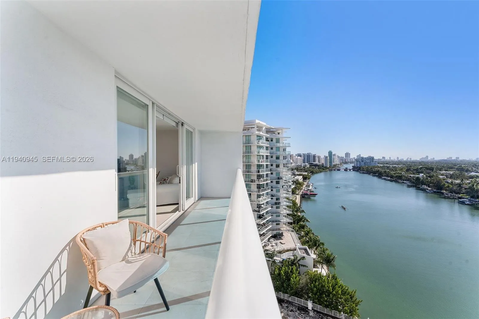 Furnished waterfront studio (993 SF) on the 14th floor with floor-to-ceiling impact sliding glass doors, custom blackout and sheer blinds,rnand panoramic Intracoastal, Biscayne Bay, and skyline views. Rare 26-ft private balcony exclusive to this J-line. Open layout with two columns, rnnew flooring, modern bath, queen-size bed, and ample storage including walk-in closet, linen closet, and adjacent storage room. rnKitchen features stainless steel appliances and black granite countertops. Full-service building with 24/7 attended lobby, valet parking, rngym, sauna, pool under renovation, reopening Summer 2026, on-site management, and laundry located directly across from the unit.rnTwo blocks to beach and boardwalk with easy access to South Beach, Bal Harbour, Wynwood, Design District, and MIA. No pets. Available 3/10/26.