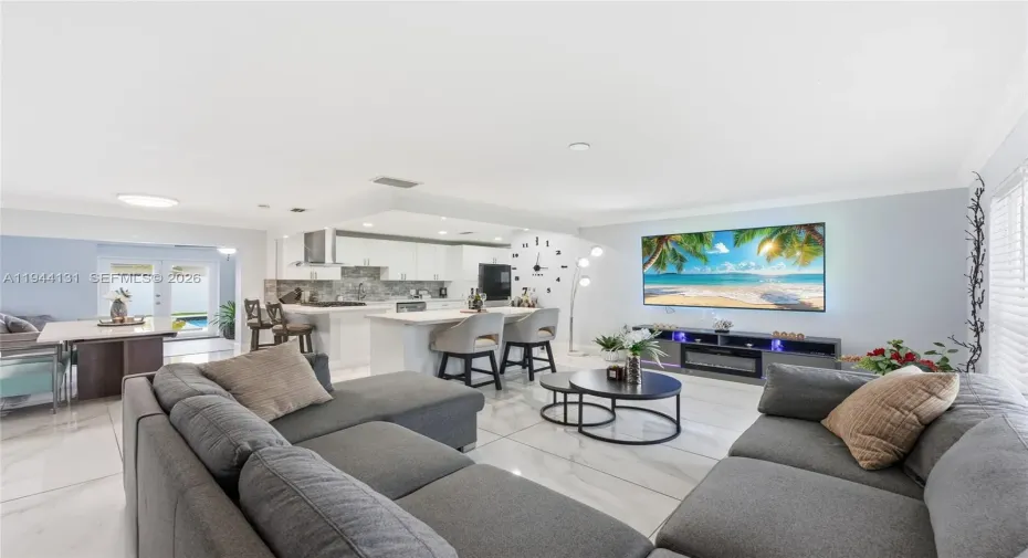 Welcome to this beautifully renovated 4-bedroom, 2-bath pool home, designed for effortless Florida living. The open-concept layout is ideal for entertaining and showcases a stunning kitchen with quartz countertops, stainless steel smart appliances, gas cooking, and a built-in wet bar, perfect for hosting. The home offers true, well-defined living spaces including a living room, dining room, Florida room, and a full laundry room for added convenience. Enjoy peace of mind with impact windows and doors and a newer roof. Seamless indoor-outdoor living awaits in the Florida room with French doors that open to the patio, large pool, and putting green ideal for relaxing or entertaining. Additional upgrades include new tile on the pool deck, a backyard shed, turfed lawn, and a U-shaped driveway providing ample parking and excellent curb appeal. Ideally located near top-rated schools, Sawgrass Mall, the Sawgrass Expressway, dining, and entertainment. This home truly has it all and will not last! *Garage was converted to 4th Bedroom.