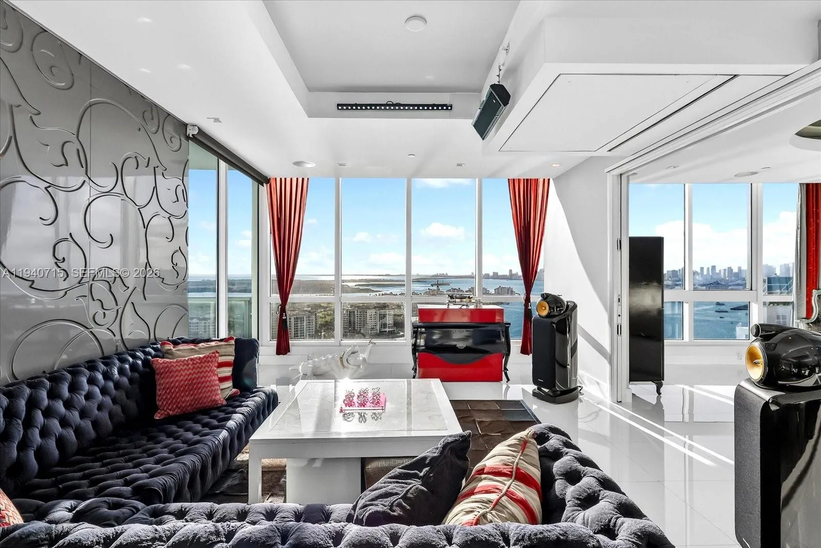 “The Other Side”…One of kind luxury custom unit on the 30th floor South Tower offering sweeping wide bay sunset views of downtown Miami skyline. Two bed 2.5 bath home features back lit glass walls, crocodile leather wall treatments, bespoke rotating European bed with crocodile leather, multi color back lit onyx bar, marble jacuzzi, waterfall feature, Savant smart system + facial-recognition access, $350,000+ of integrated surround sound and electronics, motorized shades, and lobby with cow hide fur walls. Continuum is Miami Beach’s only prestigious oceanfront resort whose residents enjoy 12 acres of beachfront amenities with lagoon pools, tennis courts, spa, 6000+ sq ft fitness center, concierge, valet, and private restaurant. Storage and one parking space. Call today to take a tour!
