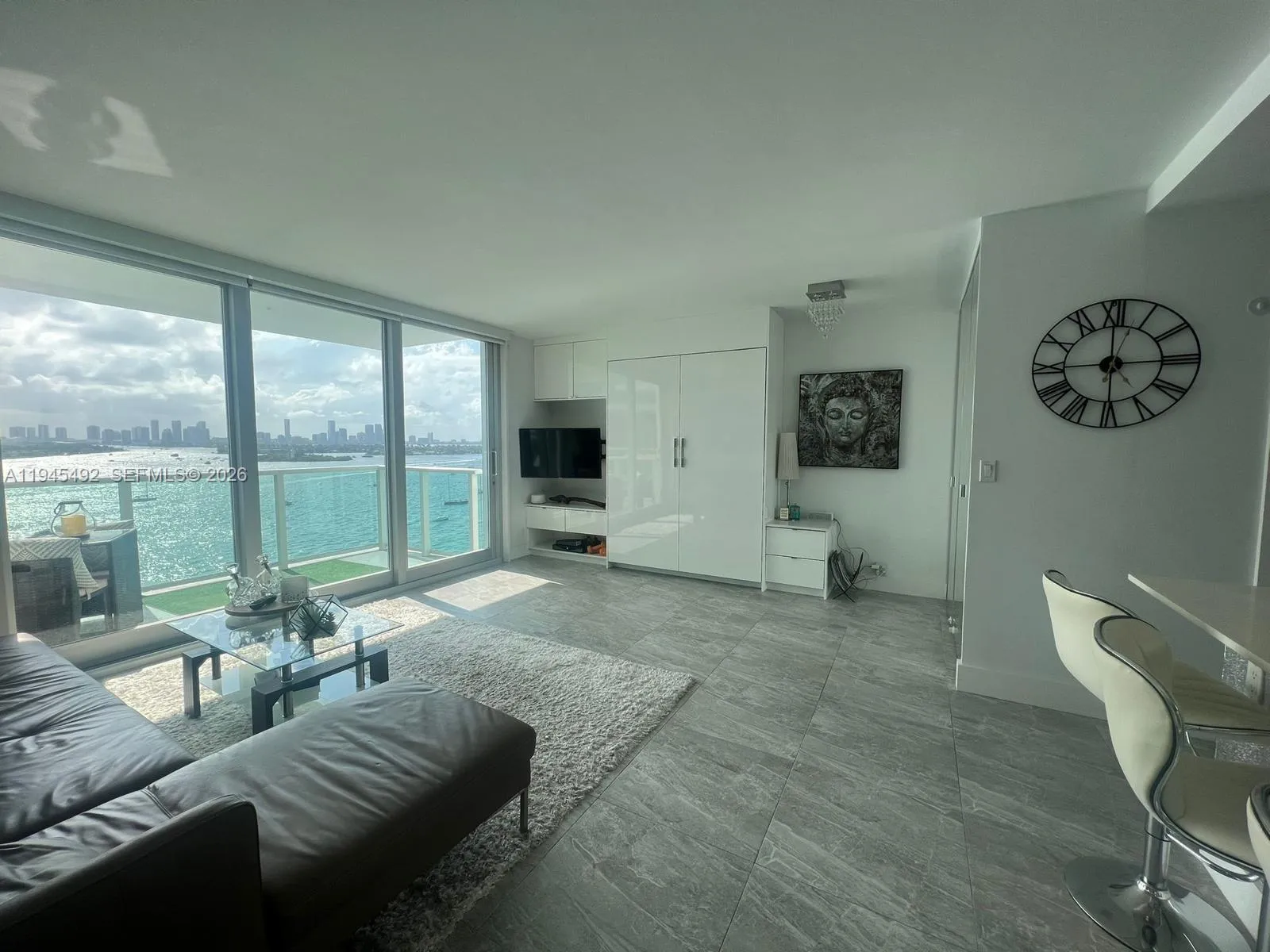 An exceptional waterfront residence in the heart of South Beach, offered fully renovated, designer furnished, and ready for immediate enjoyment. Framed by sweeping views of Biscayne Bay, Star Island, and the Downtown skyline, this refined retreat delivers tranquil daytime living and breathtaking evening city lights. The well-appointed layout features an open contemporary kitchen, sleek updated bath, in-unit washer and dryer, expansive walk-in closet, separate pantry, Murphy bed, linen storage, and impact windows throughout. Residents enjoy resort-level amenities including a waterfront pool and a state-of-the-art fitness center with complimentary classes. Ideally located moments from Whole Foods, Trader Joe’s, cafés, fine dining, and Lincoln Road. Valet parking available for an additional monthly fee.