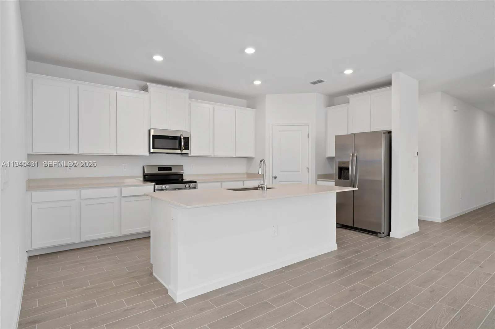 Brand-new 4-bedroom, 3-bath single-family home in the desirable Pioneer Ranch community of Southwest Ocala. This single-story residence features a bright, open-concept layout, offering a spacious great room, a modern kitchen with solid-surface countertops and stainless steel appliances, ceramic tile in the main living areas, and a private primary suite with a walk-in closet and en-suite bath. Enjoy indoor-outdoor living with a covered lanai and a fully landscaped lot. Additional highlights include a 2-car garage and a split-bedroom floor plan. Conveniently located near shopping, dining, medical facilities, and easy access to FL-200.