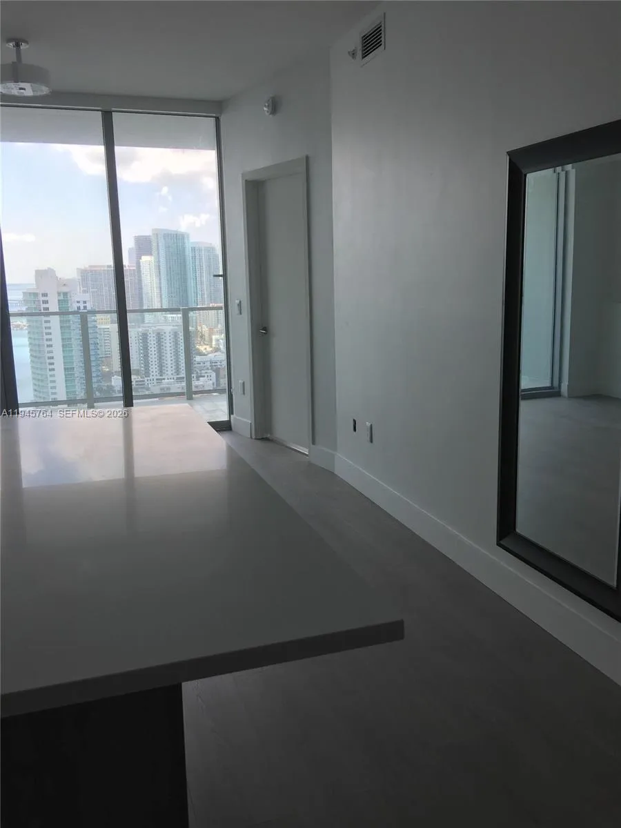 Amazing Biscayne Bay, Atlantic Ocean, and city skyline views through dramatic 10-foot floor-to-ceiling windows. Enjoy a spacious balcony with preferred southern exposure in the only unit in the building that has been fully modified, upgraded, and completely finished.rnrnThis residence features a versatile den that can easily convert into a second bedroom, dressing room, or office, two full bathrooms, a central kitchen island, and a custom finished walk-in closet. Additional highlights include blackout blinds, Italian kitchen and bathroom cabinetry, quartz countertops, Miele appliances, and a large washer and dryer in unit. Private elevators open directly into the unit’s foyer, offering maximum privacy and exclusivity.rnrnThe building is the only one with its own private Beach Club and sandy area, featuring a bayfront pool, daybeds, cabanas, food and bar service, and towel service. Residents enjoy full-service concierge, a state-of-the-art fitness center, spa, salon, massage and treatment rooms, game rooms, grand lounge, office/working spaces, and valet service.rnrnTenant occupied till January 29. Please use Showing Assist or contact the listing agent
