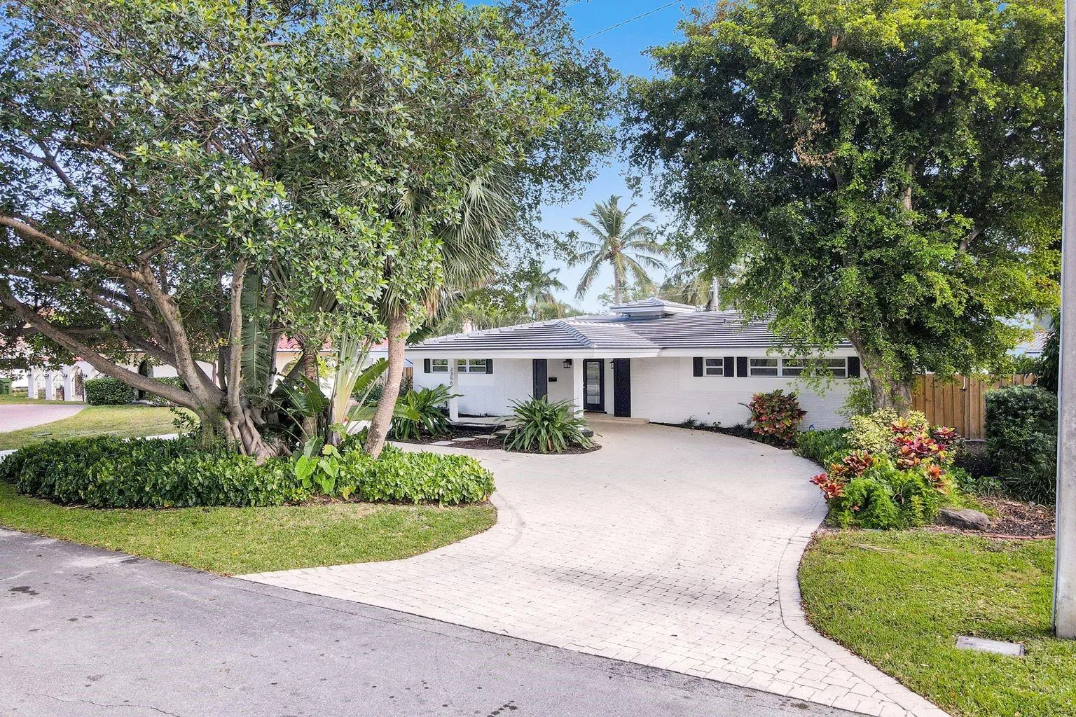 Beautifully updated 4-bedroom, 3-bath pool home in gated Sunrise Intracoastal. Features include light wood-look tile floors, a striking rough cut marble feature wall, recessed LED lighting, impact-resistant doors and windows, and custom closets throughout. The spacious kitchen offers stainless steel appliances and counter seating. The primary suite and guest suite open directly to the backyard and pool. The south-facing backyard enjoys all-day sun, lush tropical landscaping for privacy, and outdoor kitchen, dining, and lounge areas surrounding the large pool. A circular driveway leads to a porte-cochere. Prime location: less than a mile to the beach, near parks, The Galleria, and Las Olas Boulevard
